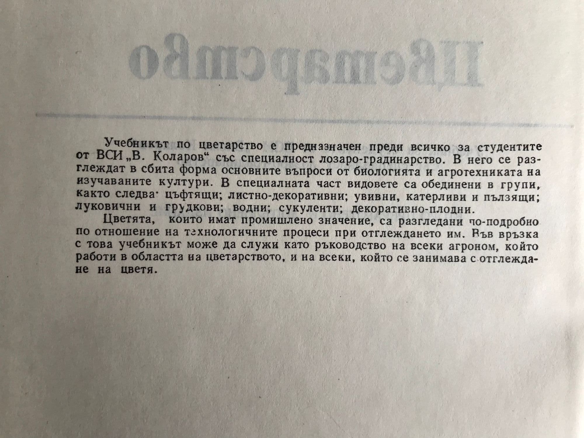 Учебник за студентите от ВСИ "Васил Коларов" със специалност лозаро-градинарство