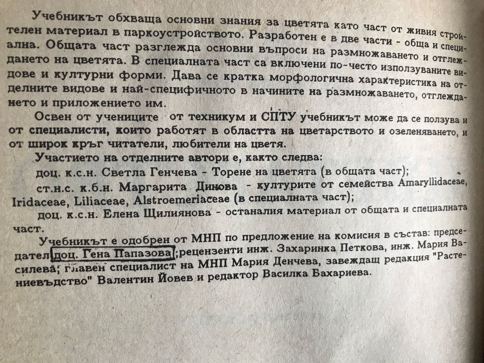 от доц. Елена Щилиянова, ст. н. с. Маргарита Динова, доц. Светла Генчева