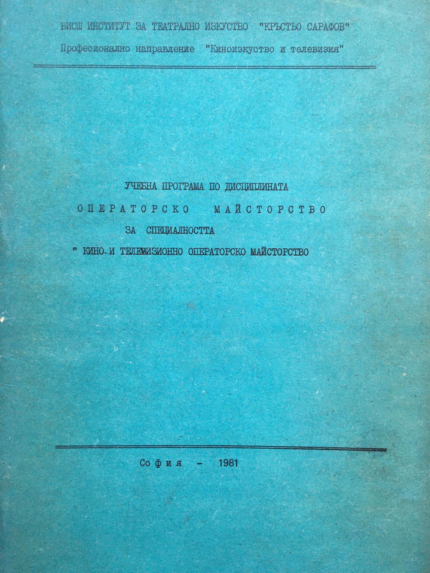 Учебна програма по дисциплината "Операторско майсторство"