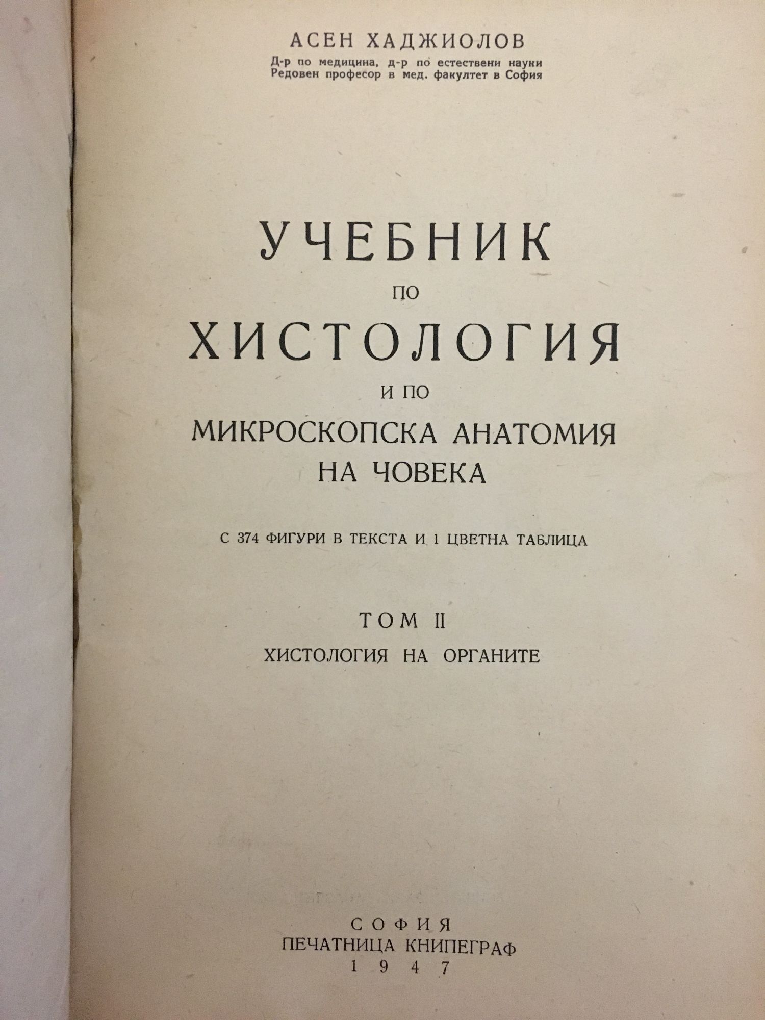 Двата тома са в едно книжно тяло. Том 1: Въведение в хистологията. Обща цитология. Обща хистология. Том 2: Хистология на органите.