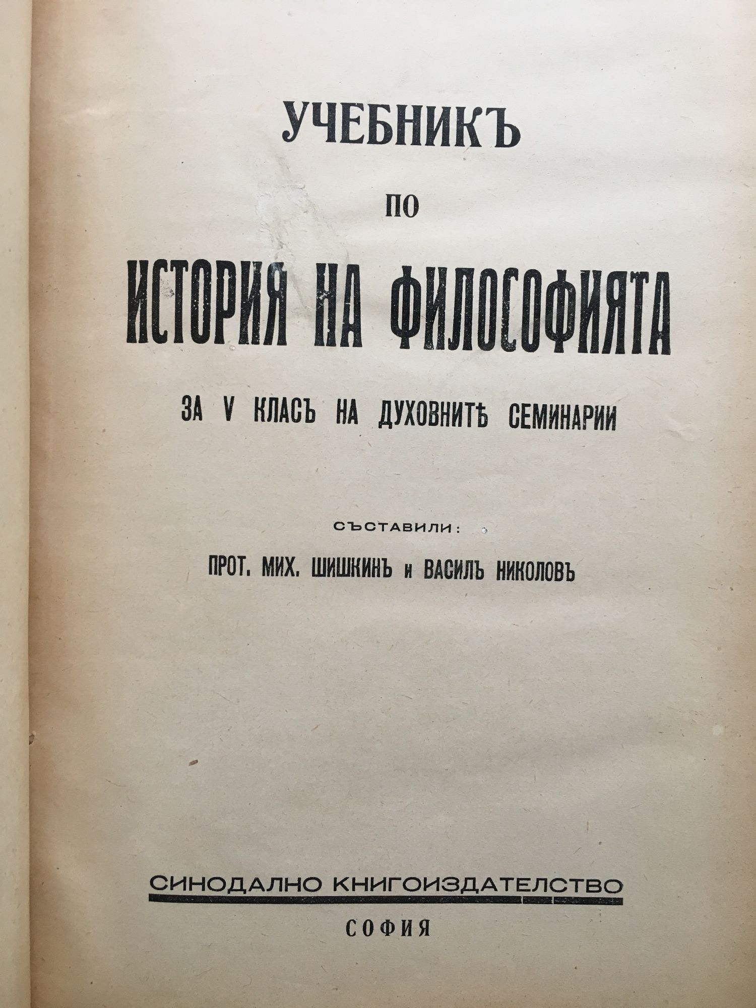 Учебникъ по история на философията за 5. класъ на духовните семинарии