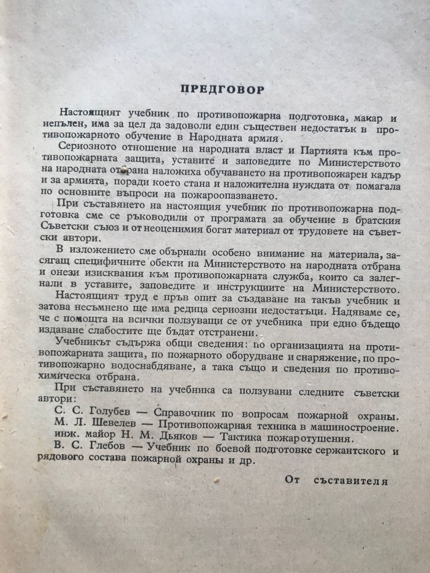 Учебник по противопожарна подготовка за офицери, сержанти и завеждащи П. П. служби в частите, учрежденията и предприятията на Народната армия