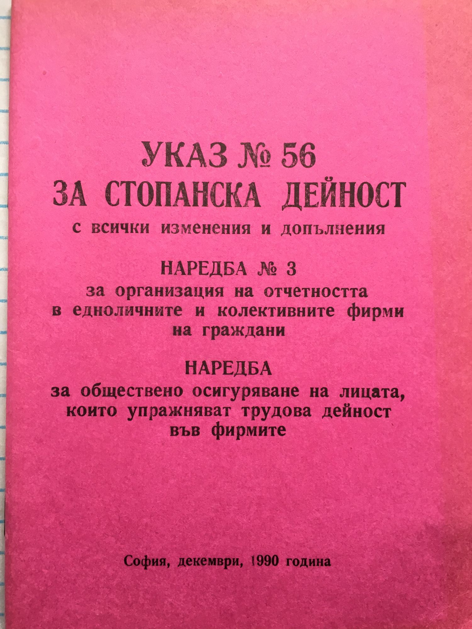 Наредба №3 за организация на отчетността в едноличните колективните фирми на граждани. Наредба за обществено осигуряване на лицата, които упражняват трудова дейност във фирмите.