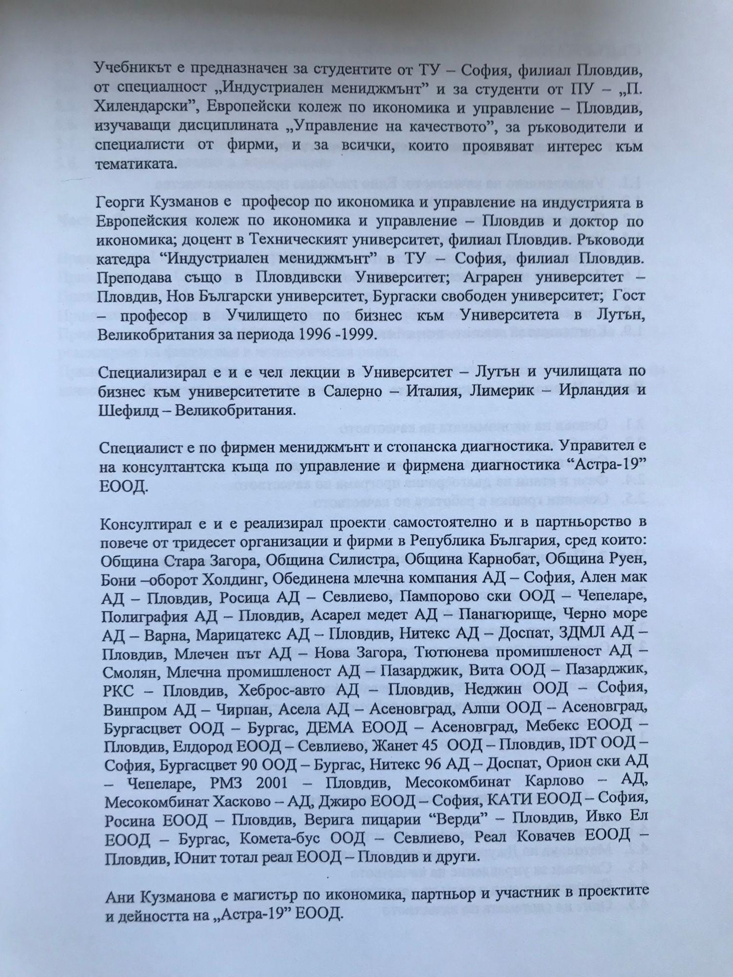 от проф. д-р. Георги Кузманов, маг. ик. Ани Кузманова