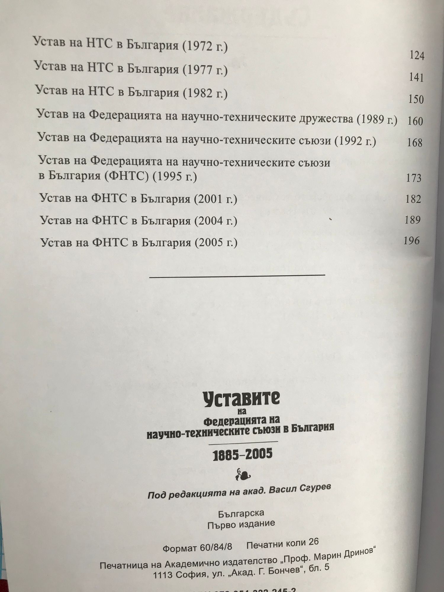 Уставите на федерацията на научно-техническите съюзи в българия 1885 - 2005 г.