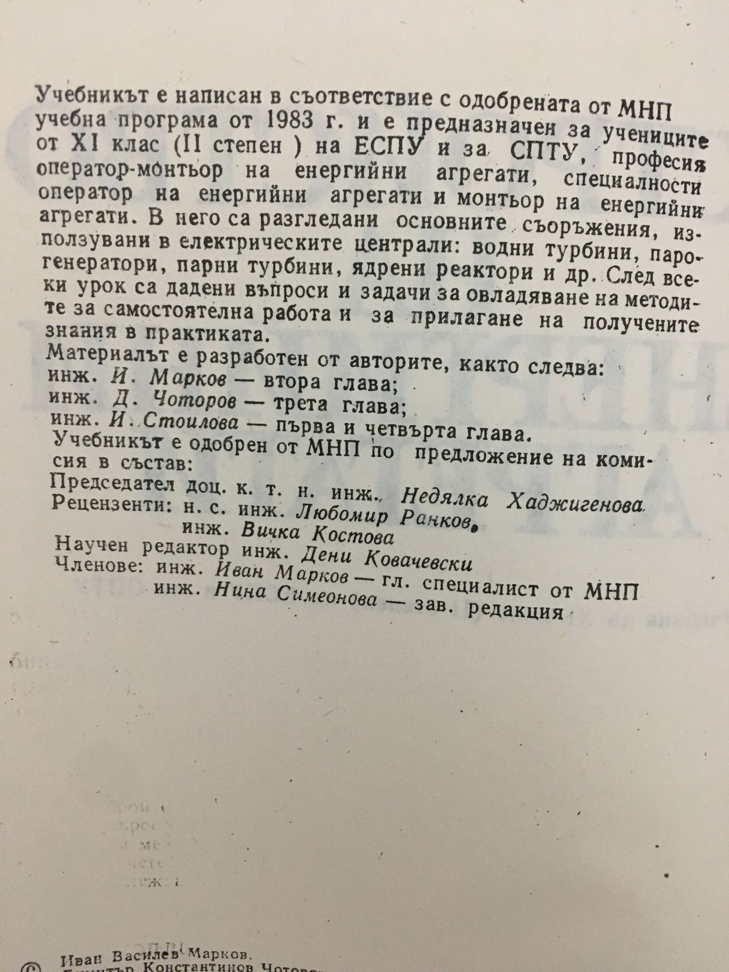 от инж. Иван Марков, инж. Димитър Чоторов, инж. Ирина Стоилова