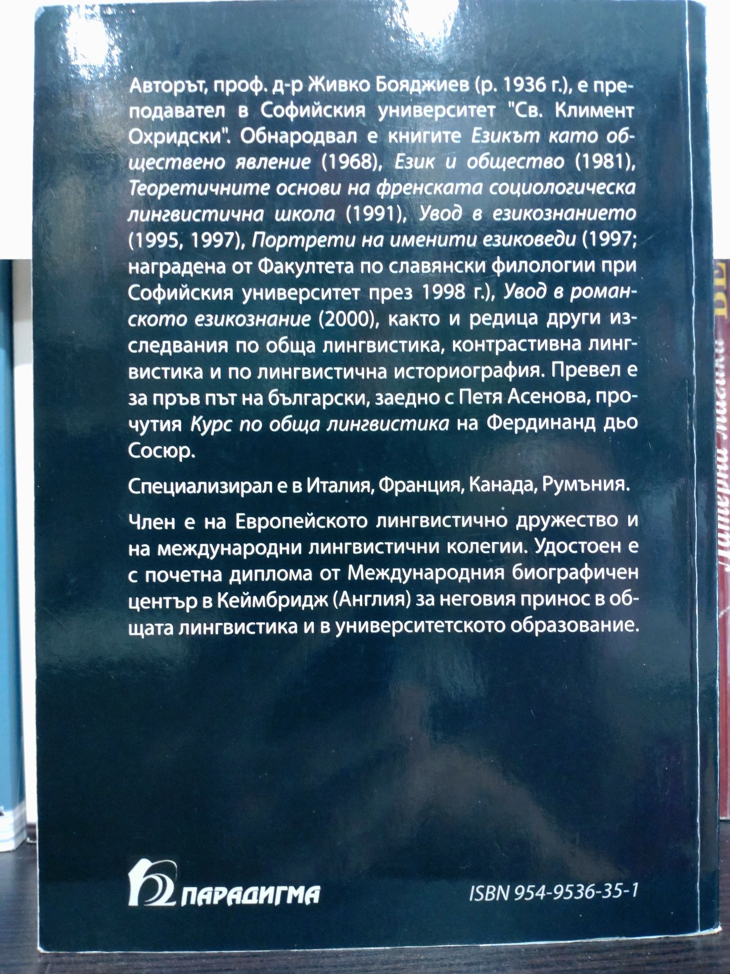 Авторът е преподавател в СУ "Св. Климент Охридски". Обнародвал е книги, както и редица изследвания по обща лингвистика, контрастивна лингвистика и по лингвистична историография. Превел е за пръв път на български, заедно с Петя Асенова, прочутият "Курс по обща лингивстика" на Фердинанд дьо Сосюр.