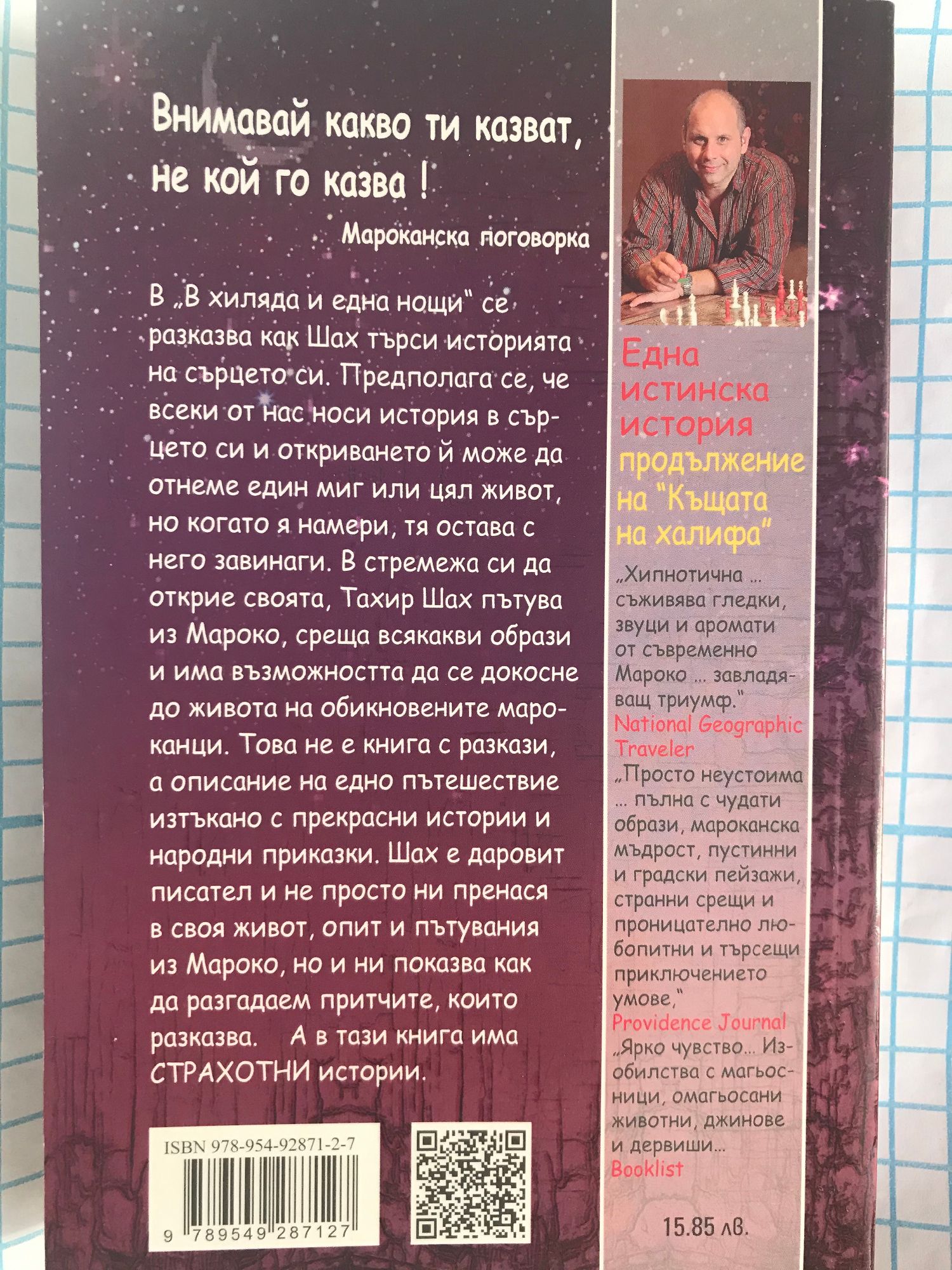 В "Хиляда и една нощи" се разказва как Шах търси историята на сърцето си. Предполага се, че всеки от нас носи история в сърцето си и откриването й може да отнеме един миг или цял живот, но когато я намери, тя остава с него завинаги. В стремежа си да открие своята, Тахир Шах пътува из Мароко, среща всякакви образи и има възможността да се докосне до живота на обикновените мароканци. Това не е книга с разкази, а описание на едно пътешествие, изтъкано с прекрасни истории и народни приказки. Шах е даровит писател и не просто ни пренася в своя живот, опит и пътувания из Мароко, но и ни показва как да разгадаем притчите, които разказва. А в тази книга има страхотни истории.