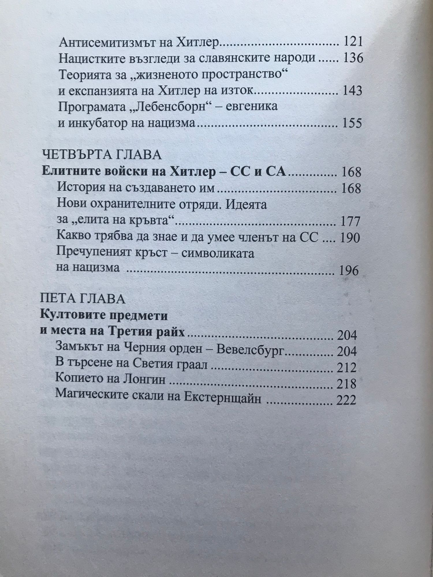 Водачите на нацистката държава са убедени в своята изключителност. Те се опитват да съвместят окултизма, езотериката, митологията и утопичната литература, а това има чудовищни последици. Теорията за жизненото пространство, за уникалността на арийската раса, опитите за създаване на съвършения човек, преклонението пред езически божества, организирането на тайни затворени общества - без изучаването на всичко това няма как да разберем действията на Адолф Хитлер. Възможно ли е да се гради бъдещето на основата на "отдавна изгубените велики тайни знания"? Тази книга разказва не само за историята на окултизма в Третия райх, но и разкрива много детайли от религиозните пристрастия, вярванията и дейността на неговите ръководители: Хитлер, Гьобелс, Химлер, Борман, Хес.