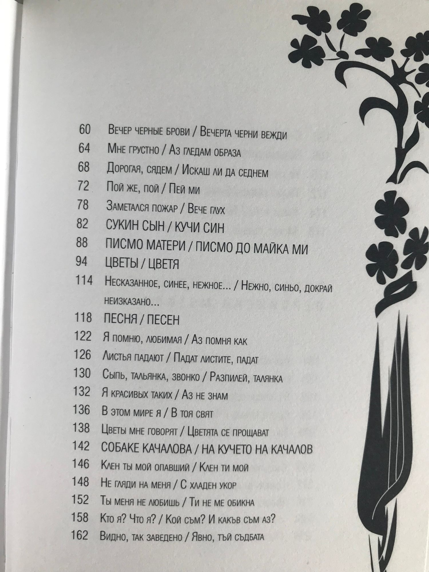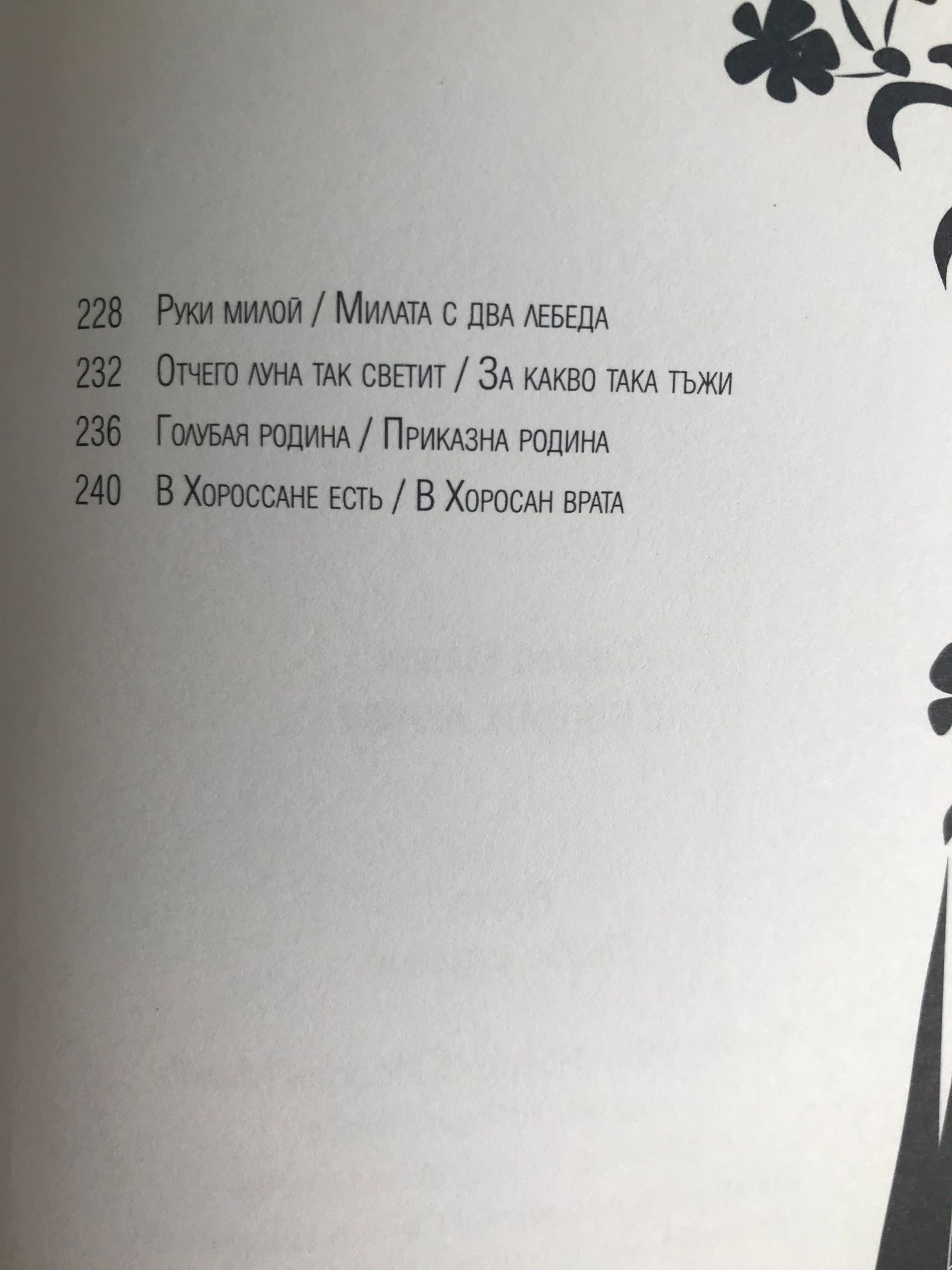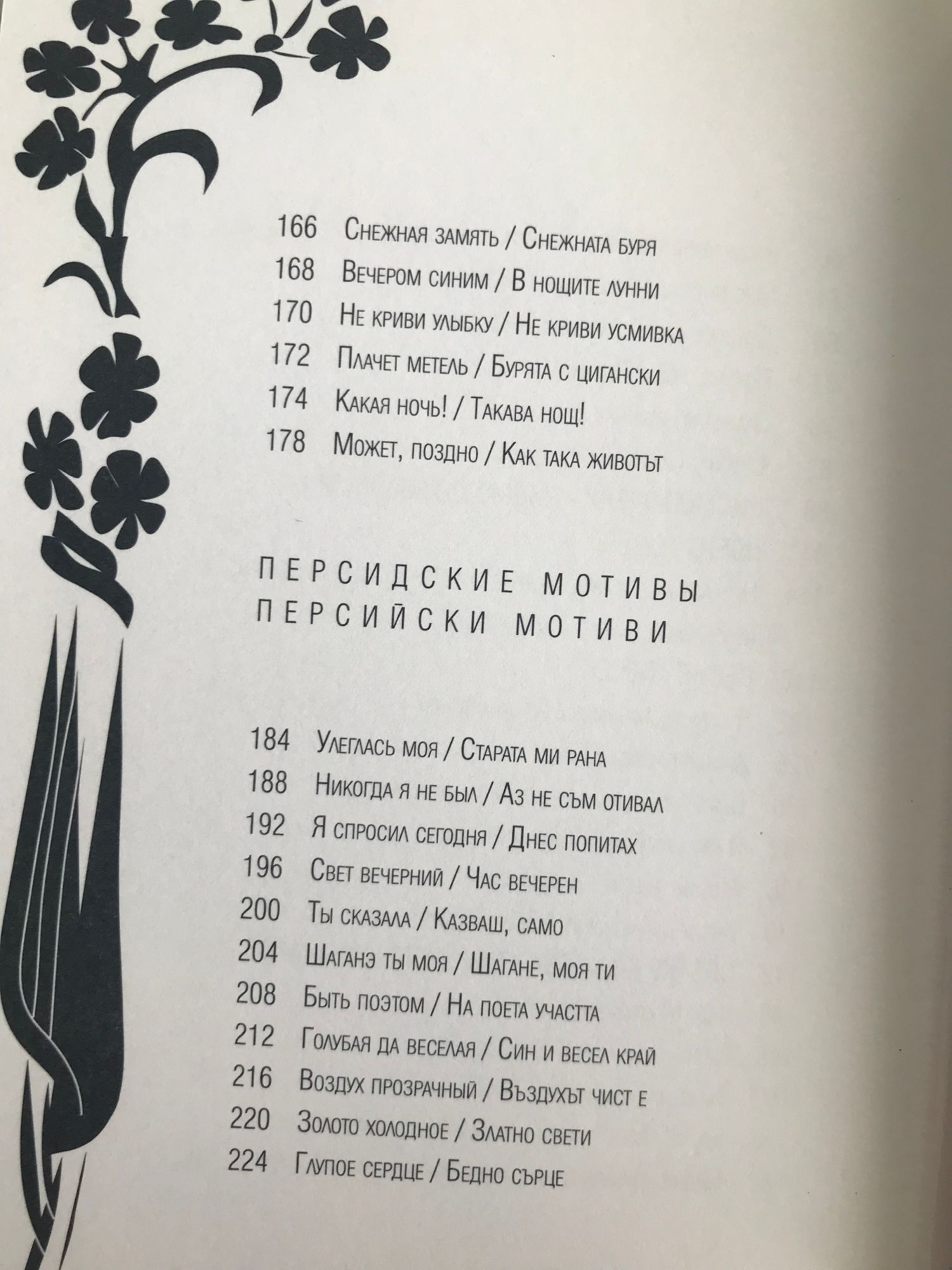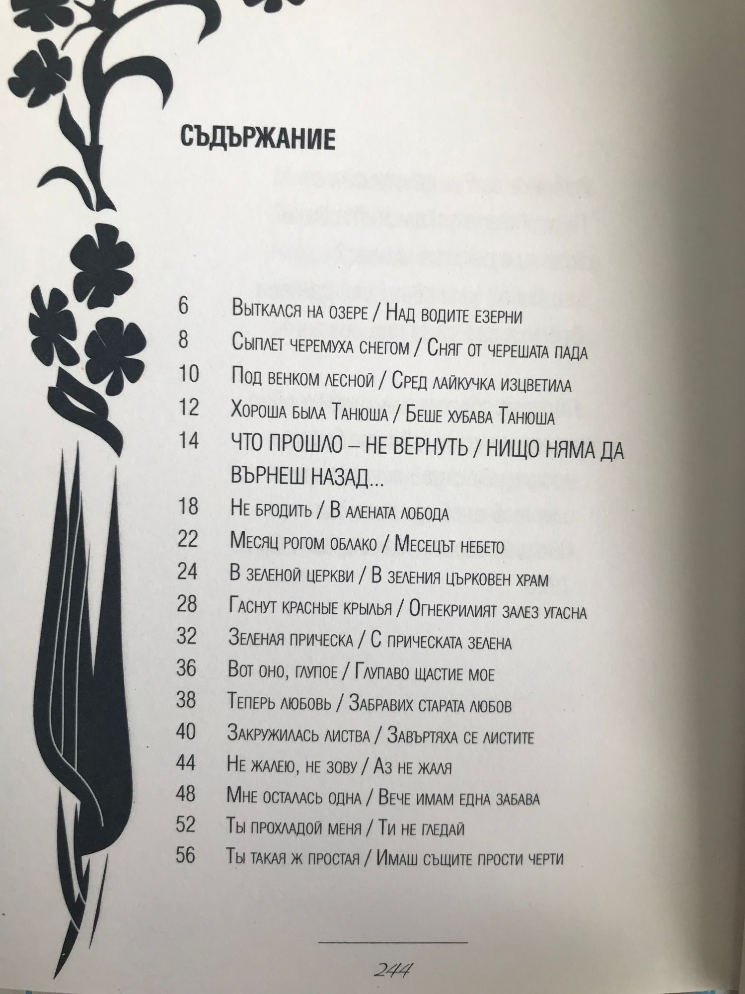 Нека синя вечер ми внушава, че била си песен и мечта, който те е сътворил такава, светла тайна е допрял с уста. В алената лобода наесен аз не търся никакви следи. С кичури подобно сноп овесен ти остана в моя сън преди.