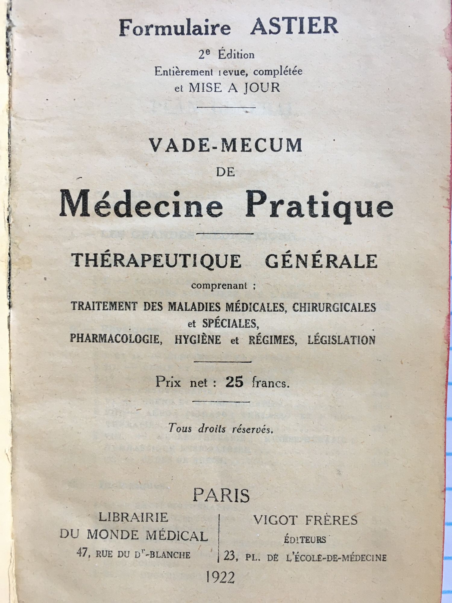 Vade-Mecum de Medecine Pratique Therapeutique Generale