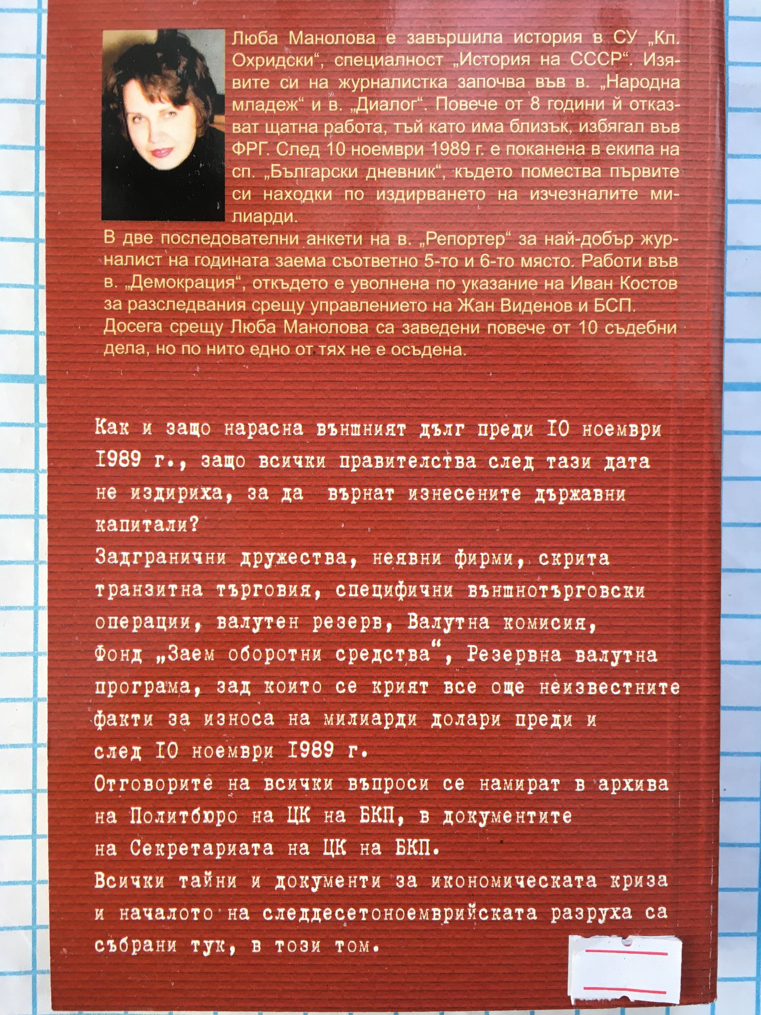 Как и защо нарасна външният дълг преди 10 ноември 1989 г., защо всички правителства след тази дата не издириха, за да върнат изнесените държавни капитали? Задгранични дружества, неявни фирми, скрита транзитна търговия, специфични външнотърговски операции, валутен резерв, Валутна комисия, фонд "Заем оборотни средства", Резервна валутна програма, зад които се крият все още неизвестните факти за износа на милиарди долари преди и след 10 ноември 1989 г. Отговорите на всички въпроси се намират в архива на Политбюро на ЦК на БКП, в документите на Секретариата на ЦК на БКП. Всички тайни и документи за икономическата криза и началото на следдесетоноемврийската разруха са събрани тук, в този том.