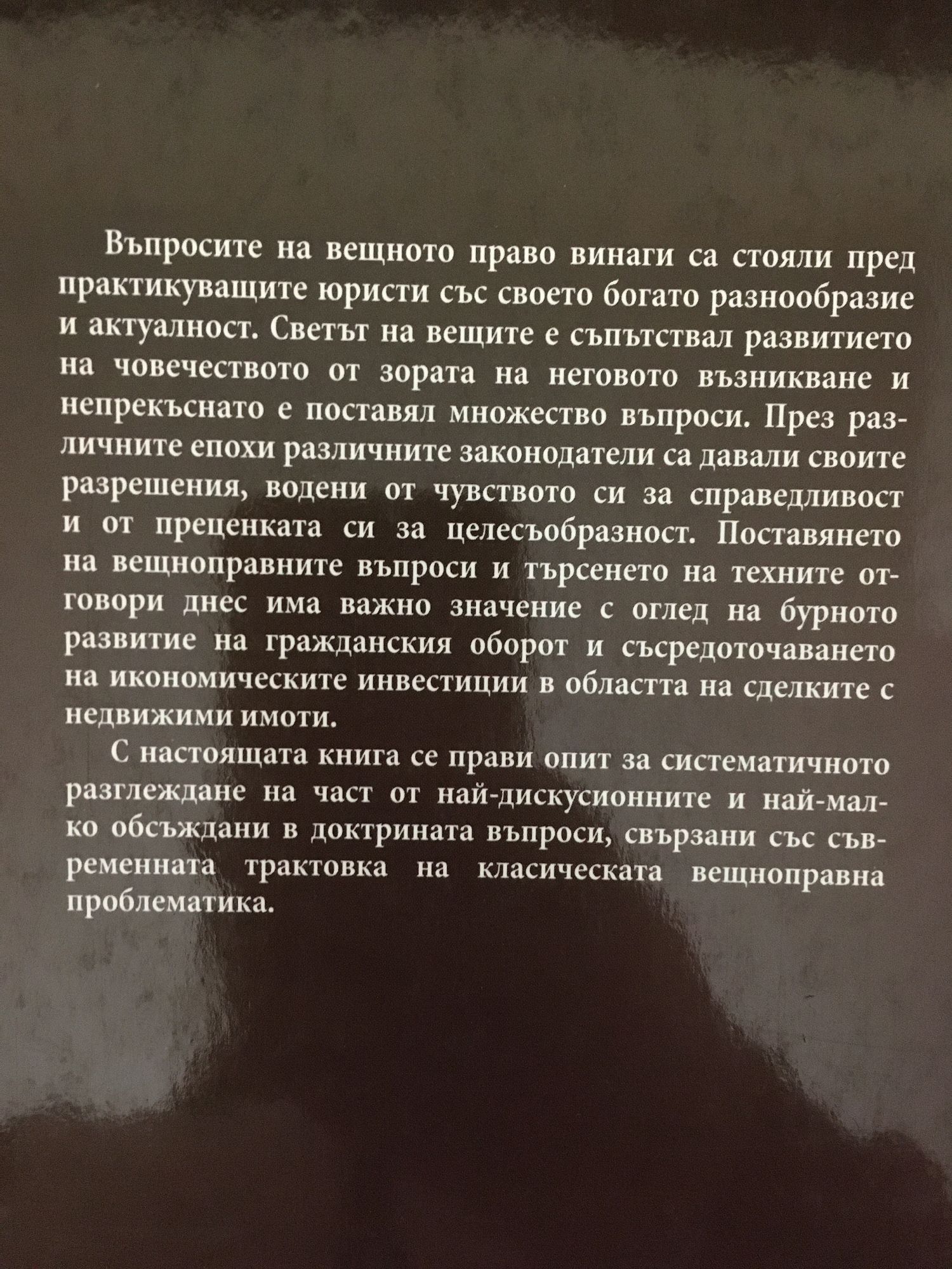 Една година след излизането на първото издание въпросите, поставяни от българското вещно право, провокират все по-голям интерес и изискват все повече отговори, както от съвременната правна доктрина, така и от практикуващите юристи. Взаимодействието между класическите вещноправни концепции и нуждите на съвременния граждански оборот води до поставянето на различни проблеми, част от които са намерили своето място и в страниците на настоящия сборник. Настоящото издание е допълнено с 13 нови въпроса: „Данъчните задължения на прехвърлителя като особена тежест върху имота” (§ 9); “Възможно ли е съществуването на ограничени вещни права в полза на собственика на вещта” (§ 10); “Учредяване на ипотека върху новопостроена сграда при съществуваща ипотека върху земята” (§ 14); “Вещни права при застрояване над и под открити пространства” (§ 17); “Сделки с вещноправно действие при имоти с неуредени сметки по регулация” (§ 24); “Правни средства за придобиване на “паркоместа” (§ 25); “Ловуването като специфичен способ за придобиване на право на собственост” (§ 28); “Кога се изгубва правото на собственост върху изгубената вещ” (§ 30); „Съгласието на собственика на сградата при учредяване на правото на надстрояване” (§ 32); “Публичната продан като специфичен способ за придобиване на вещни права” (§ 33); “Възникване на съпружеска имуществена общност при делба на наследство с уравняване на дял” (§ 36); “Самозащита на правото на собственост” (§ 38); “Отнемане на владението чрез насилие или по скрит начин по смисъла на чл. 76 ЗС” (§ 39). Част от тях са били публикувани в сп. “Собственост и право” (§ 14, § 24, § 32, § 33, § 36) или в сп. “Общество и право” (§ 10 и § 17) в периода от първото издание на настоящата книга. Четири от посочените теми – § 28, § 30, § 38, § 39, са напълно нови. От предишното изложение са отпаднали § 8 “Някои аспекти от правната същност на етажната собственост”, § 9 „Правото на изкупуване по чл. 33 ЗС” и § 17 “Въпросът за доверителната собственост според българското законодателство”. Новите теми са добавени на съответните систематични места, което е довело до промяна в номерацията на отделните части.