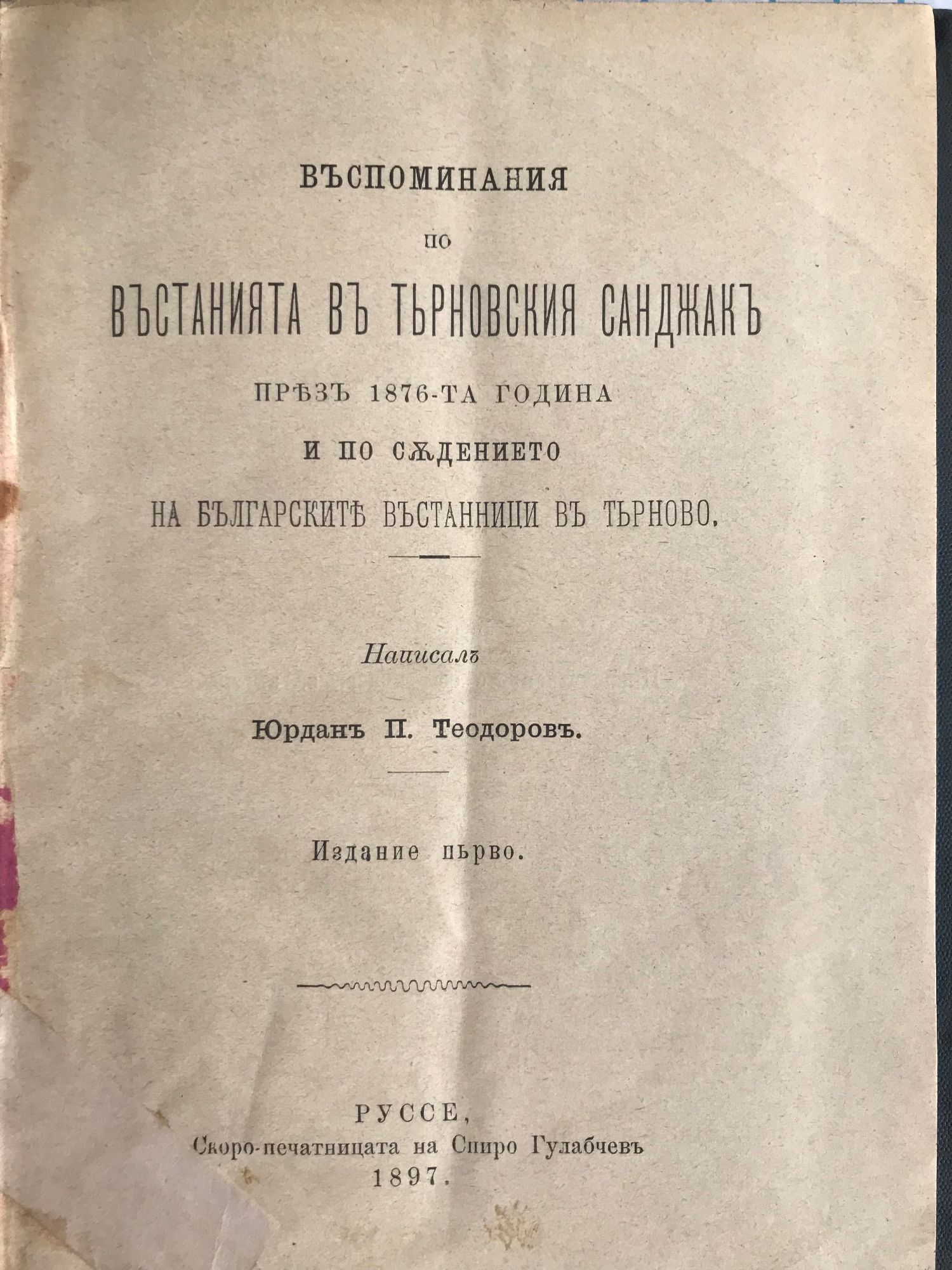 Въспоминания по въстанията въ Търновския санджакъ през 1876-та година и по съдението на българските въстаници въ Търново