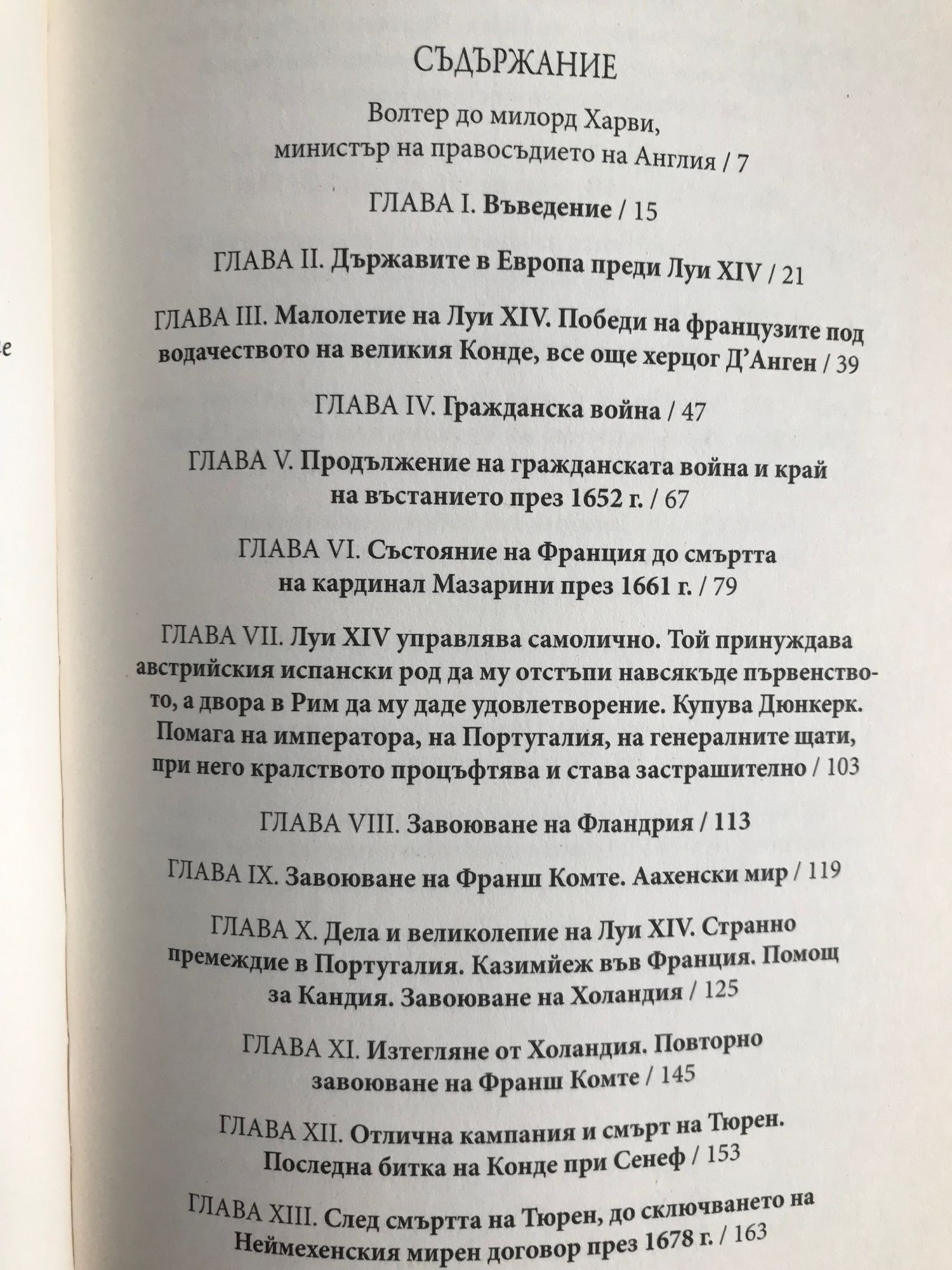 "Луи XIV искал да добави към славата, към удоволствията и галантните задявки, белязали първите години на това управление, нежността на приятелството: трудно е обаче за един крал да направи добър избор. Доверил се най-много на двамина - единият безсрамно го предал, другият злоупотребил с благоволението му. Първият бил маркиз Дьо Вард, комуто кралят изповядал впечатлението си към госпожа Дьо Лавалиер. Знаем как дворцовите интриги го тласкат да се опита да погуби госпожа Дьо Лавалиер, на която покрай своя характер нямало причини да си създава врагове; знаем, че съвместно с граф Дьо Гиш и графиня Дьо Соасон той си позволява да напише до властващата кралица подправено писмо от името на нейния баща, краля на Испания: от това писмо кралицата научава нещо, което не било необходимо да знае, тъй се накърнявал мирът в кралския дом..."
