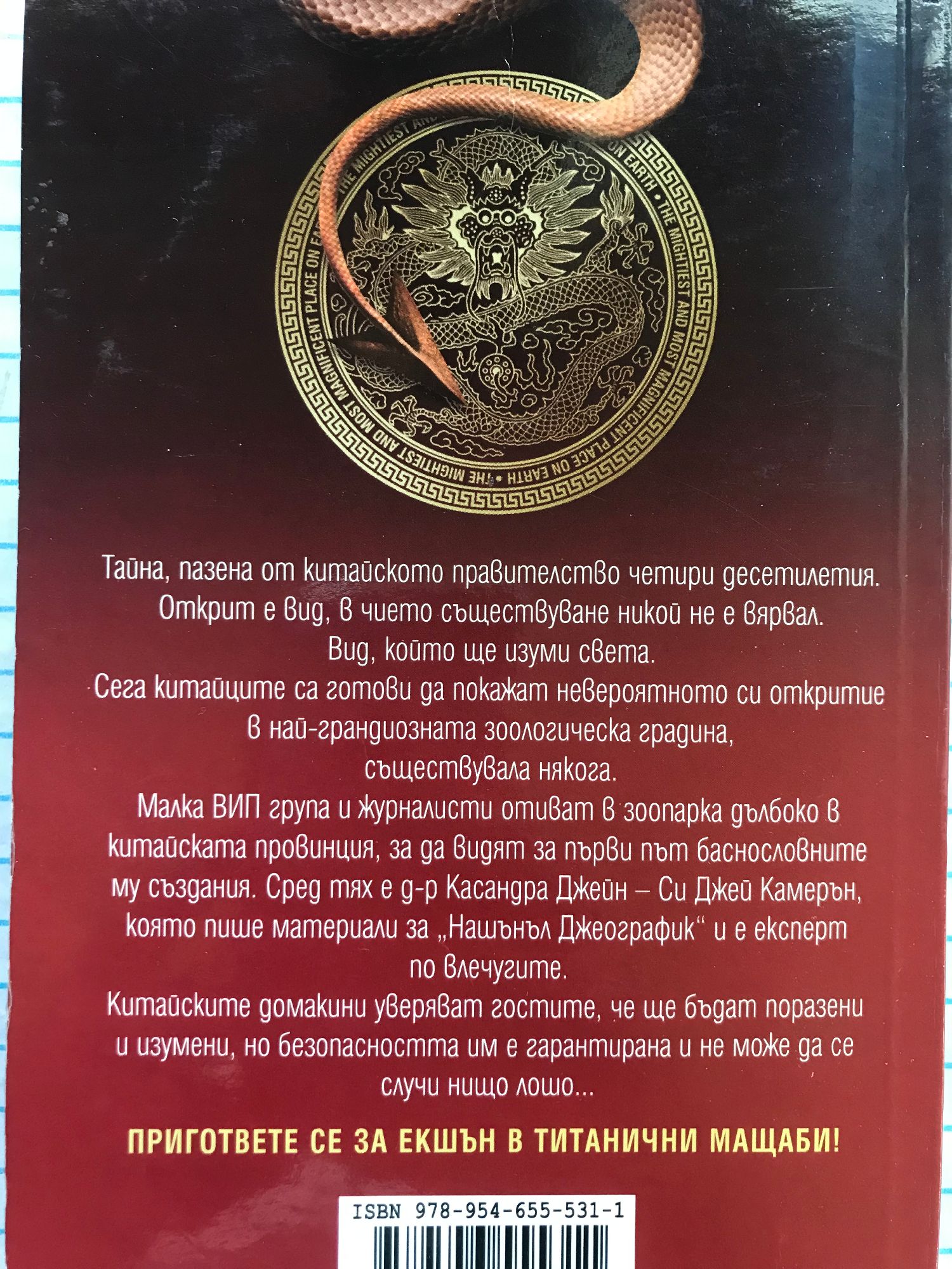 Добре дошли в ада – адски забавно е! Тайна, пазена от китайското правителство четири десетилетия. Открит е вид, в чието съществуване никой не е вярвал. Вид, който ще изуми света. Сега китайците са готови да покажат невероятното си откритие в най-грандиозната зоологическа градина, съществувала някога. Малка ВИП група и журналисти отиват в зоопарка дълбоко в китайската провинция, за да видят за първи път баснословните му създания. Сред тях е д-р Касандра Джейн – Си Джей Камерън, която пише материали за „Нашънъл Джеографик” и е експерт по влечугите. Китайските домакини уверяват гостите, че ще бъдат поразени и изумени, но безопасността им е гарантирана и не може да се случи нищо лошо...