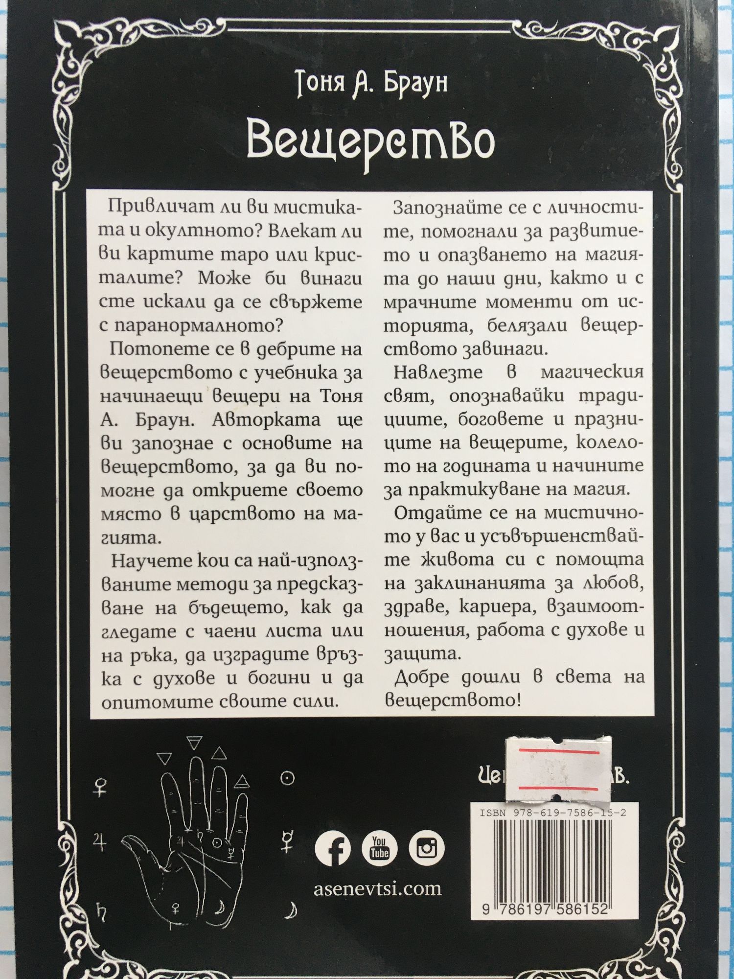 Привличат ли ви мистиката и окултното? Влекат ли ви картите таро или кристалите? Може би винаги сте искали да се свържете с паранормалното? Потопете се в дебрите на вещерството с учебника за начинаещи вещери на Тоня А. Браун. Авторката ще ви запознае с основите на вещерството, за да ви помогне да откриете своето място в царството на магията. Научете кои са най-използваните методи за предсказване на бъдещето, как да гледате с чаени листа или на ръка, да изградите връзка с духове и богини и да опитомите своите сили. Запознайте се с личностите, помогнали за развитието и опазването на магията до наши дни, както и с мрачните моменти от историята, белязали вещерството завинаги. Навлезте в магическия свят, опознавайки традициите, боговете и празниците на вещерите, колелото на годината и начините за практикуване на магия. Отдайте се на мистичното у вас и усъвършенствайте живота си с помощта на заклинанията за любов, здраве, кариера, взаимоотношения, работа с духове и защита. Добре дошли в света на вещерството!