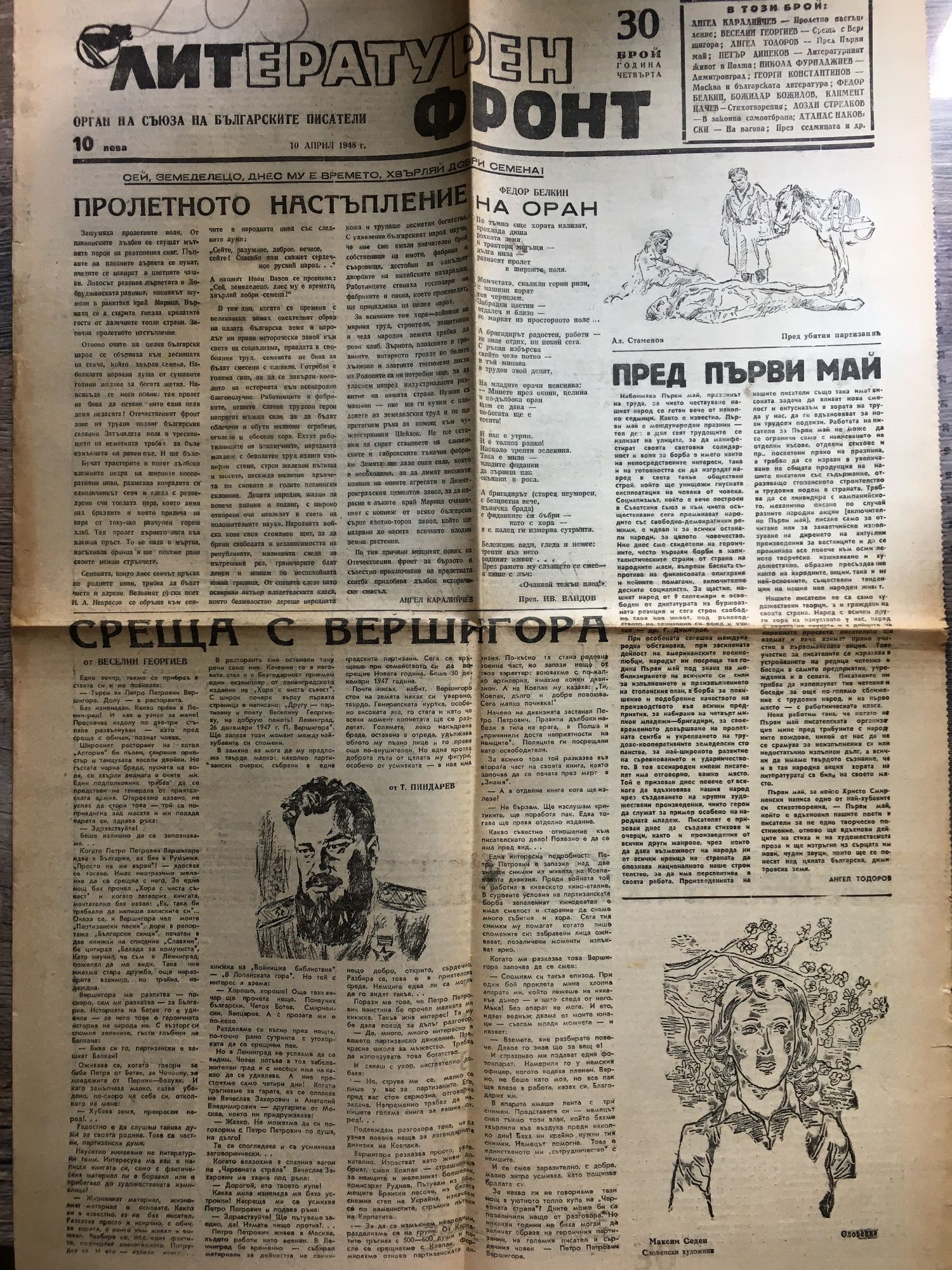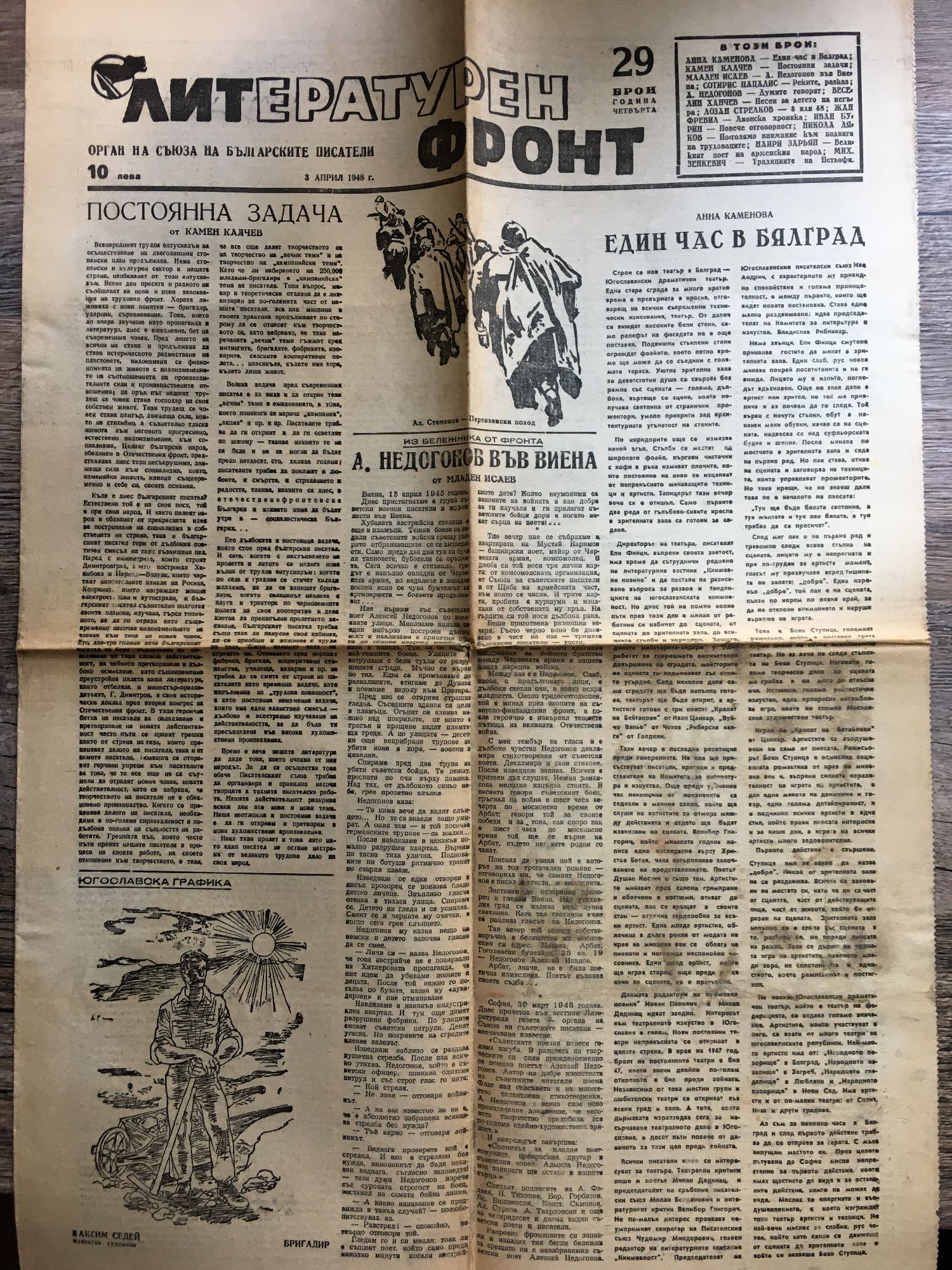 Вестник "Литературен фронт" - год. IV, бр. 29 - 32. / 3. 10. 17. 24. април 1948 г.