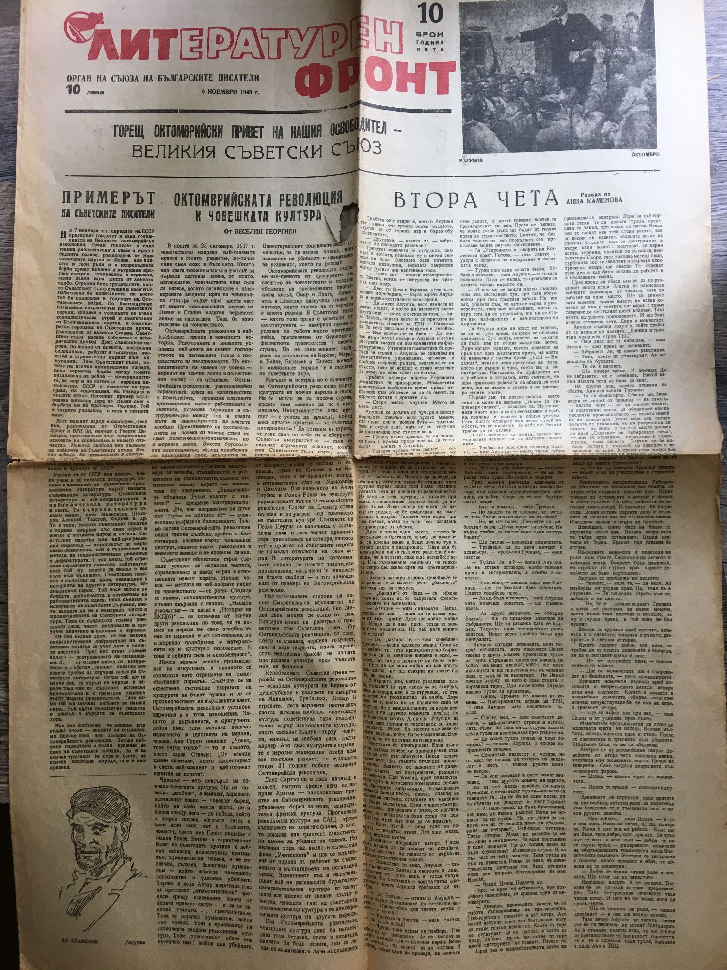 Вестник "Литературен фронт" - год. V, бр. 10. 6 ноември 1948 г.