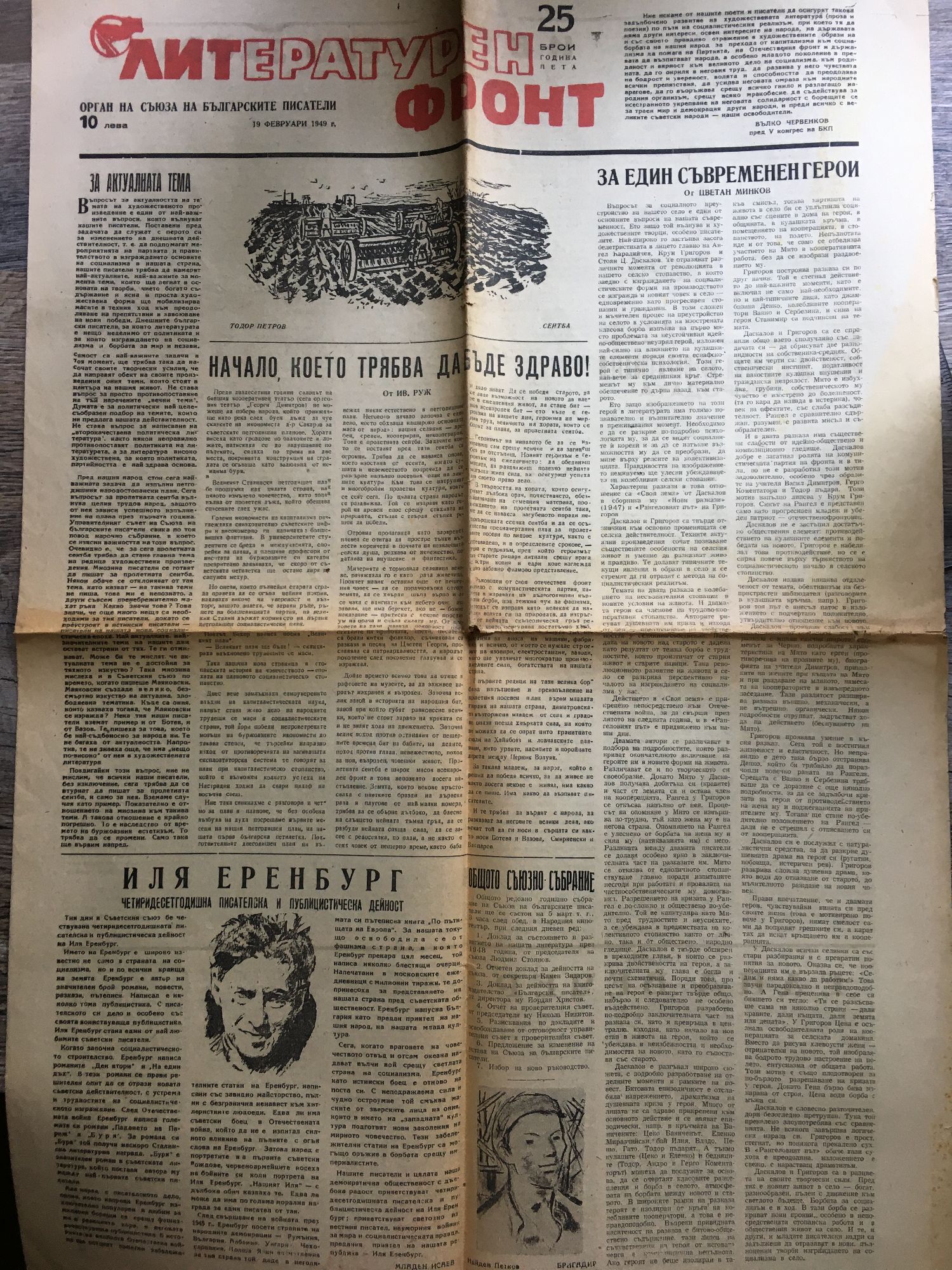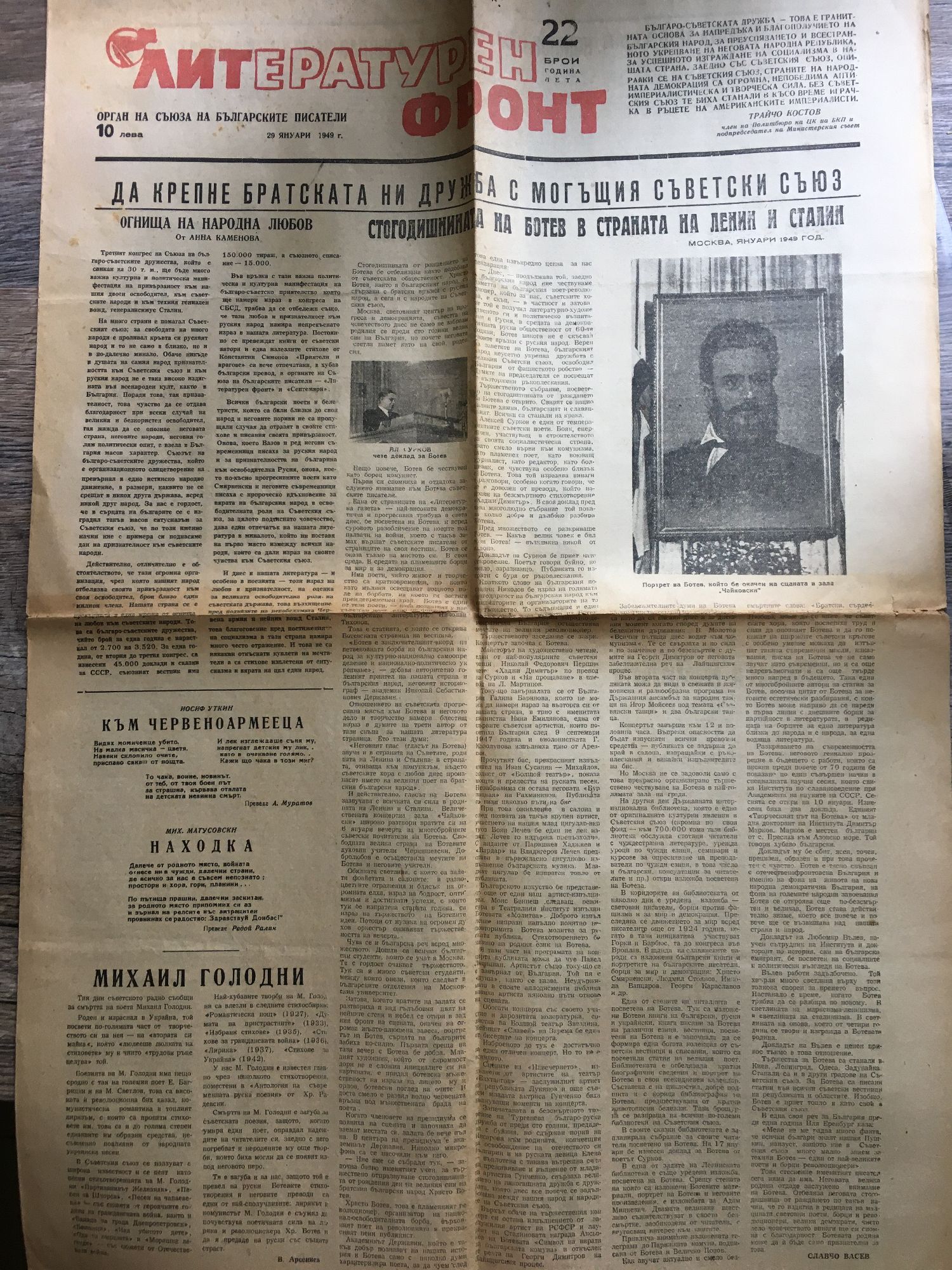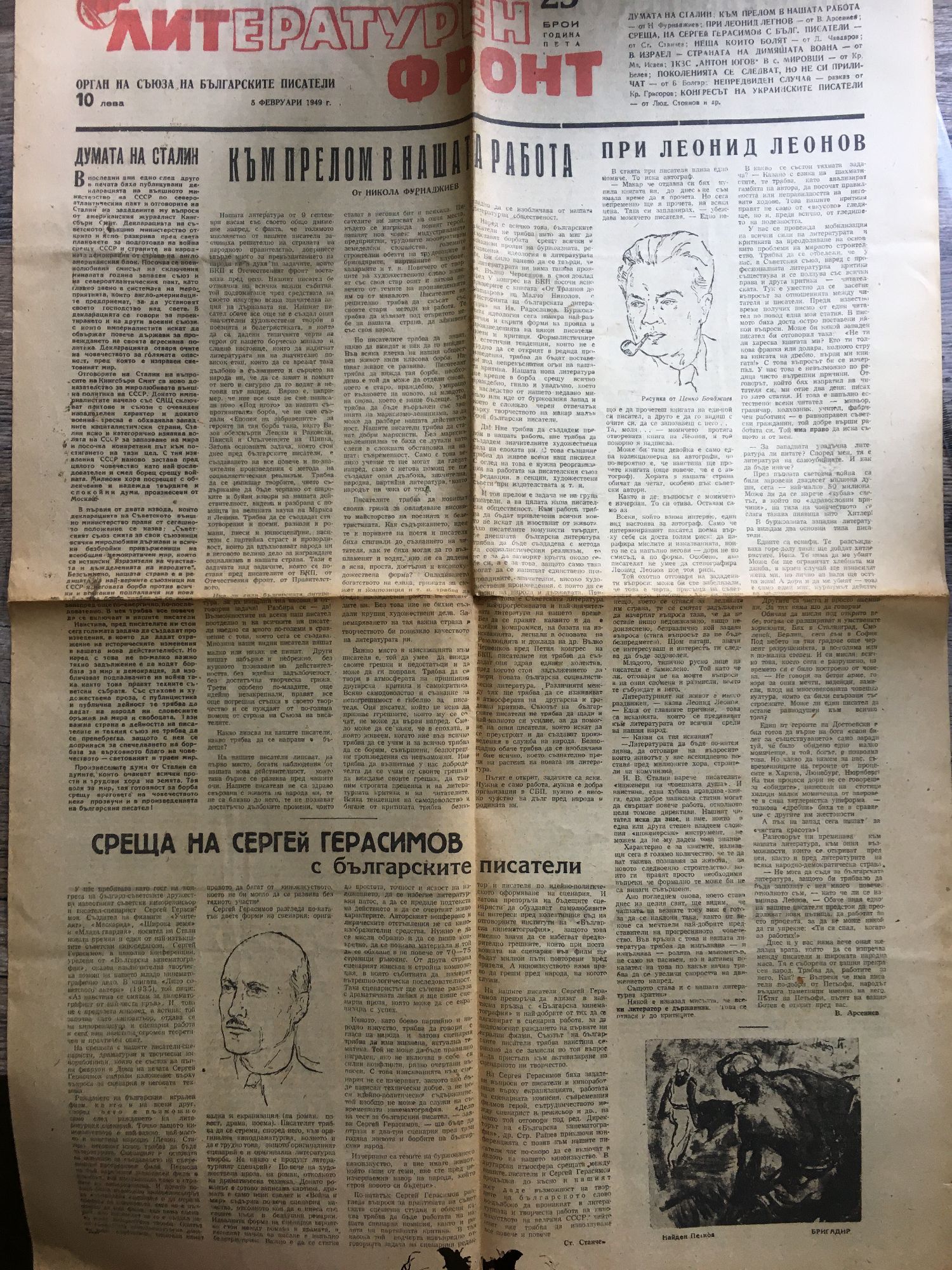 Вестник "Литературен фронт" - год. V, бр. 22 - 25. 29 януари, 5, 12, 19 февруари 1949 г.