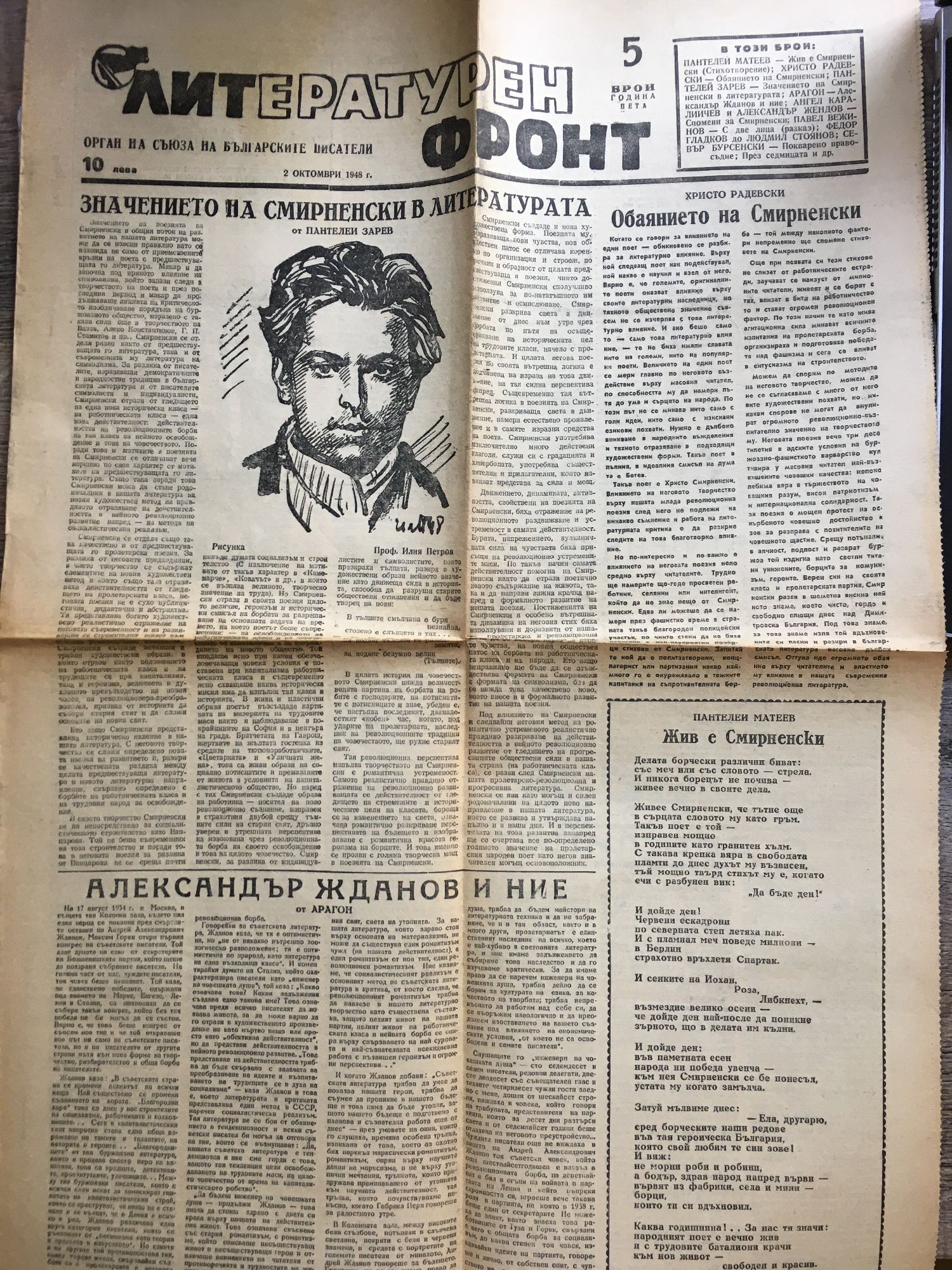 Вестник "Литературен фронт" - год. V, бр. 5. октомври 1948 г.