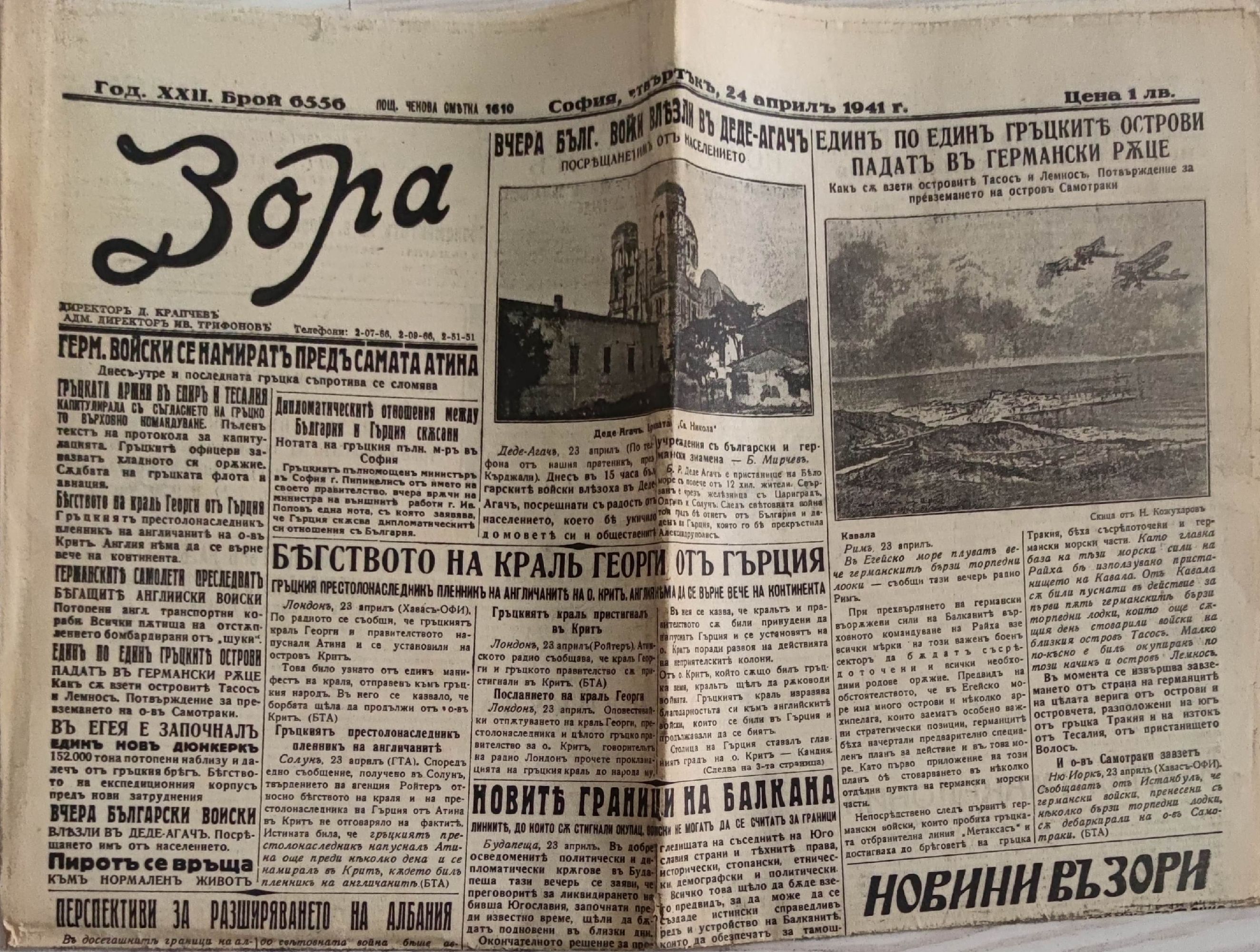 Година XXII, брой 6556, София, четвъртък, 24 април, 1941 г.