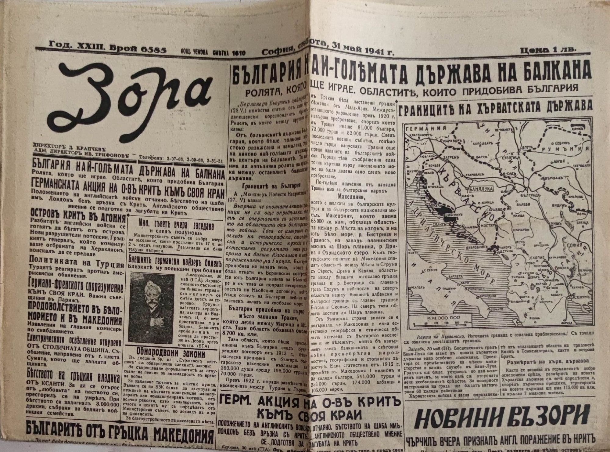 Година XXIII, брой 6585, София, събота, 31 май, 1941 г.
