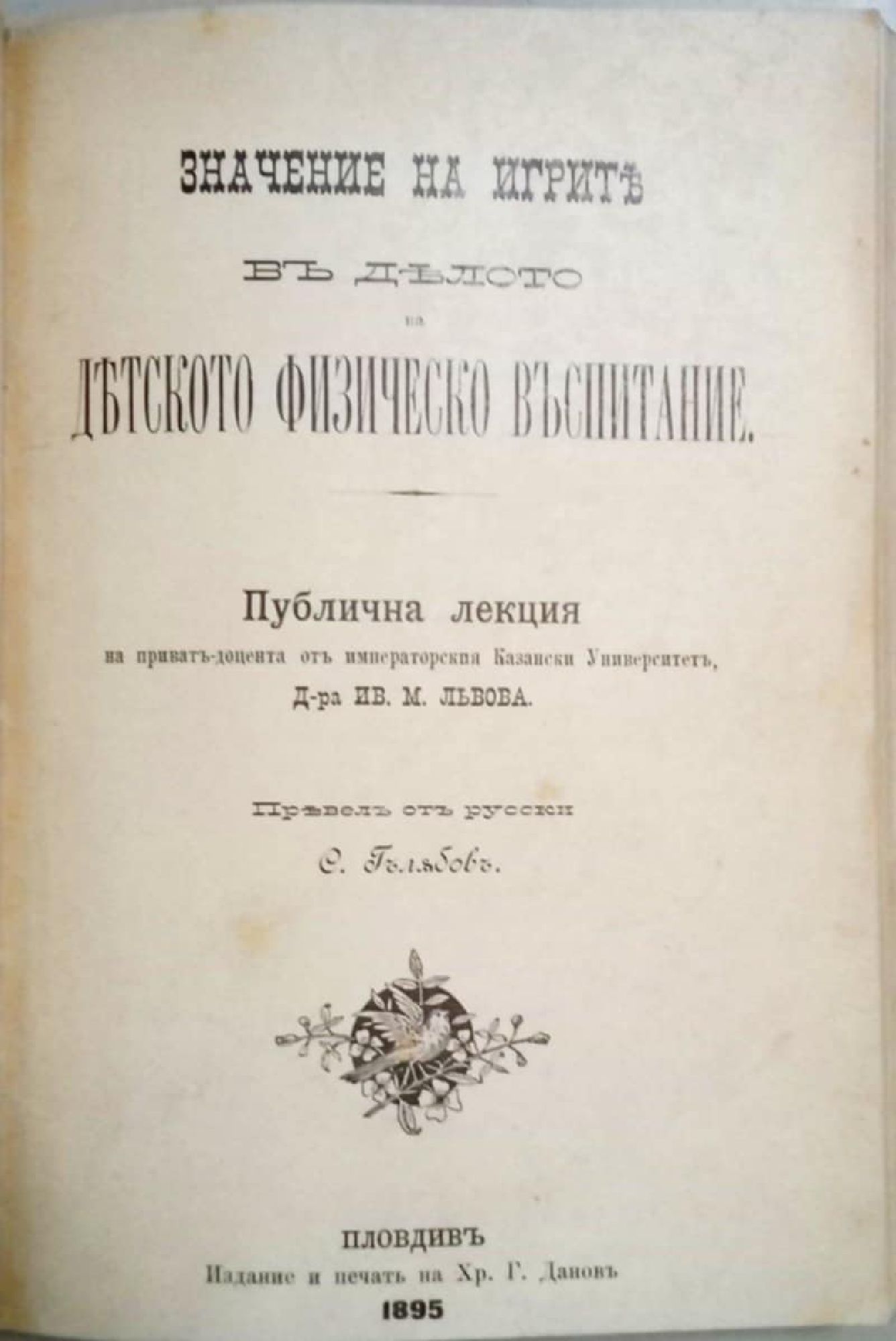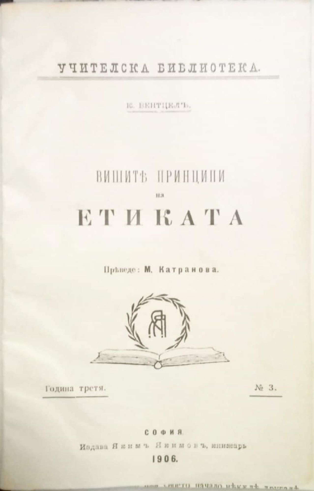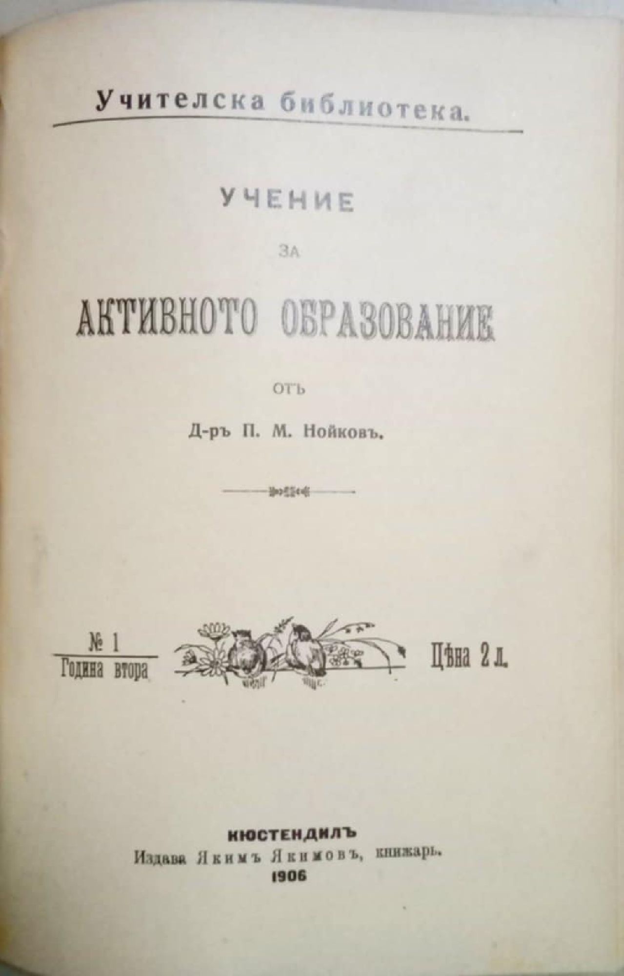 Конволют от четири антикварни книги на тема философия и педагогика: 1. К. Вентцел. Вишите принципи на етиката. С., 1906, 76 с. 2. Ив. Львов. Значението на игрите въ (в) делото на детското физическо въспитание. Публична лекция. Пловдив, 1895, 54 с. 3. И. А. Сикорски. Психологичните основи на възпитанието. С., 1906, 32 с. 4. П. М. Нойков. Учение за активното образование. Кюстендил, 1906, 216 с.