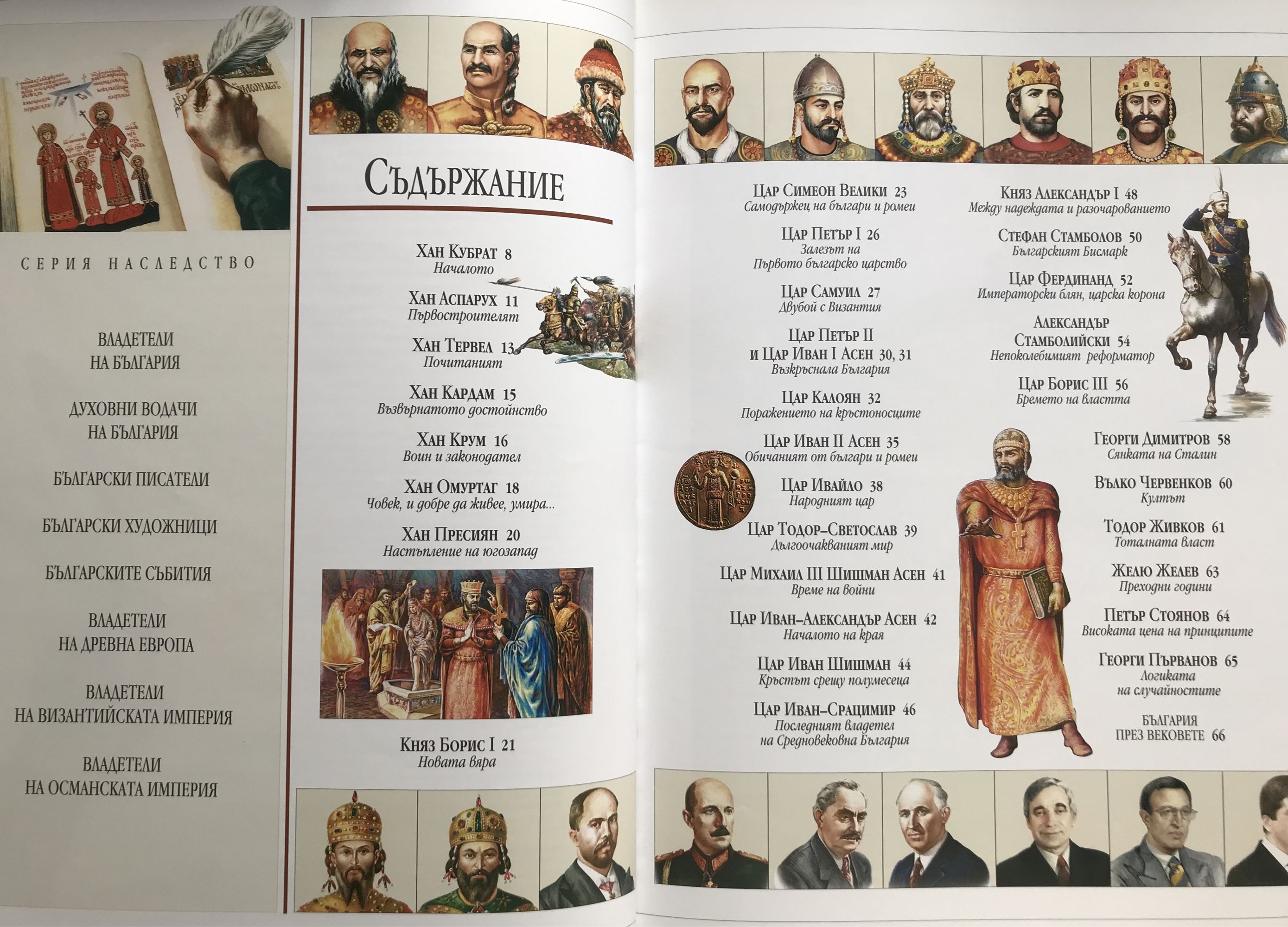 Тридесет и два исторически персонажа: ханове, князе, царе и държавници с доказана власт и влияние от времето на хан Кубрат до наши дни. Славата и драматизмът в управлението на една държава, призвана да бъде обетованата земя на българите.