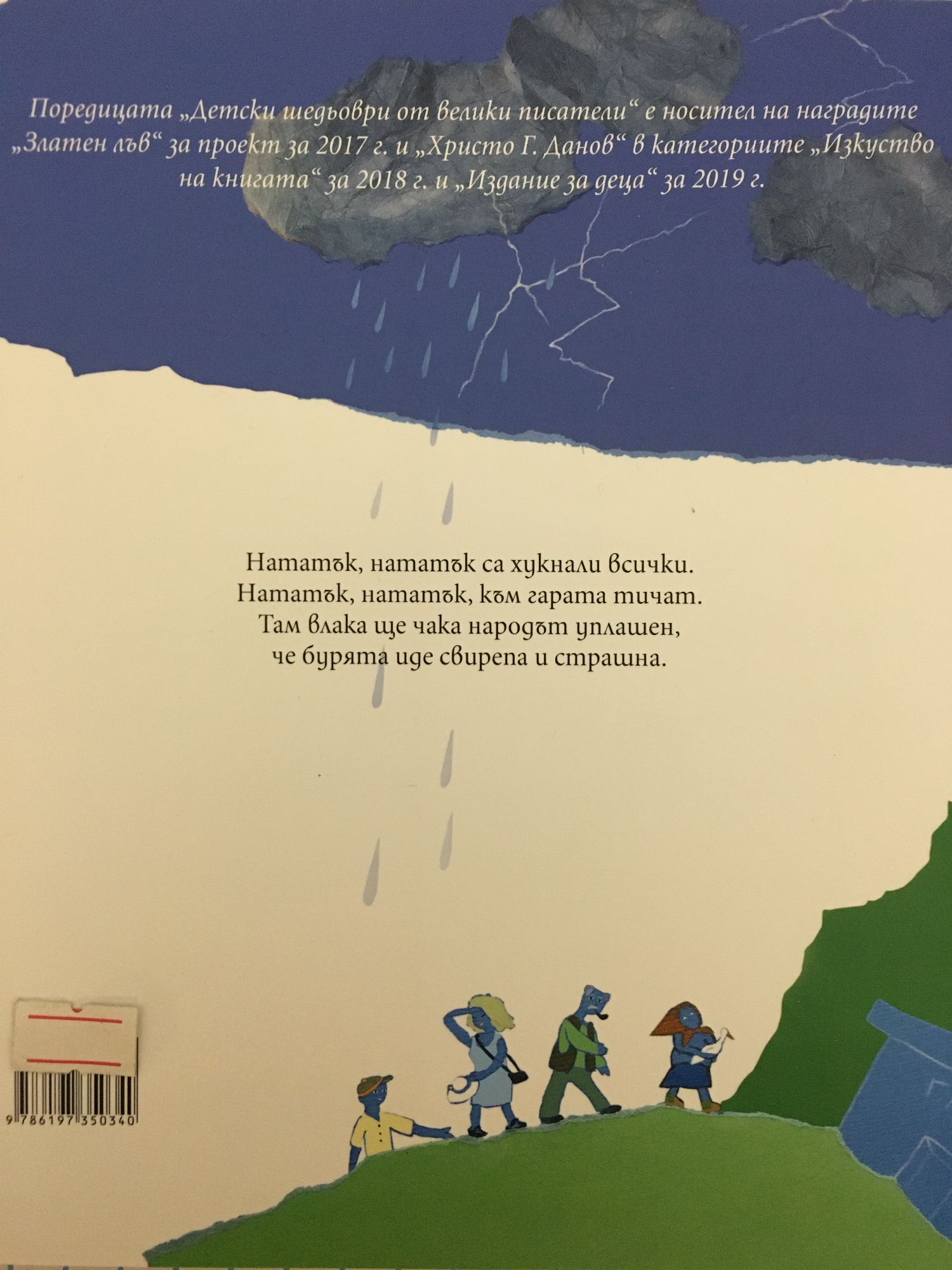 Откъс: Нататък, нататък са хукнали всички. Нататък, нататък, към гарата тичат. Там влака ще чака народът уплашен, Че бурята иде свирепа и страшна.