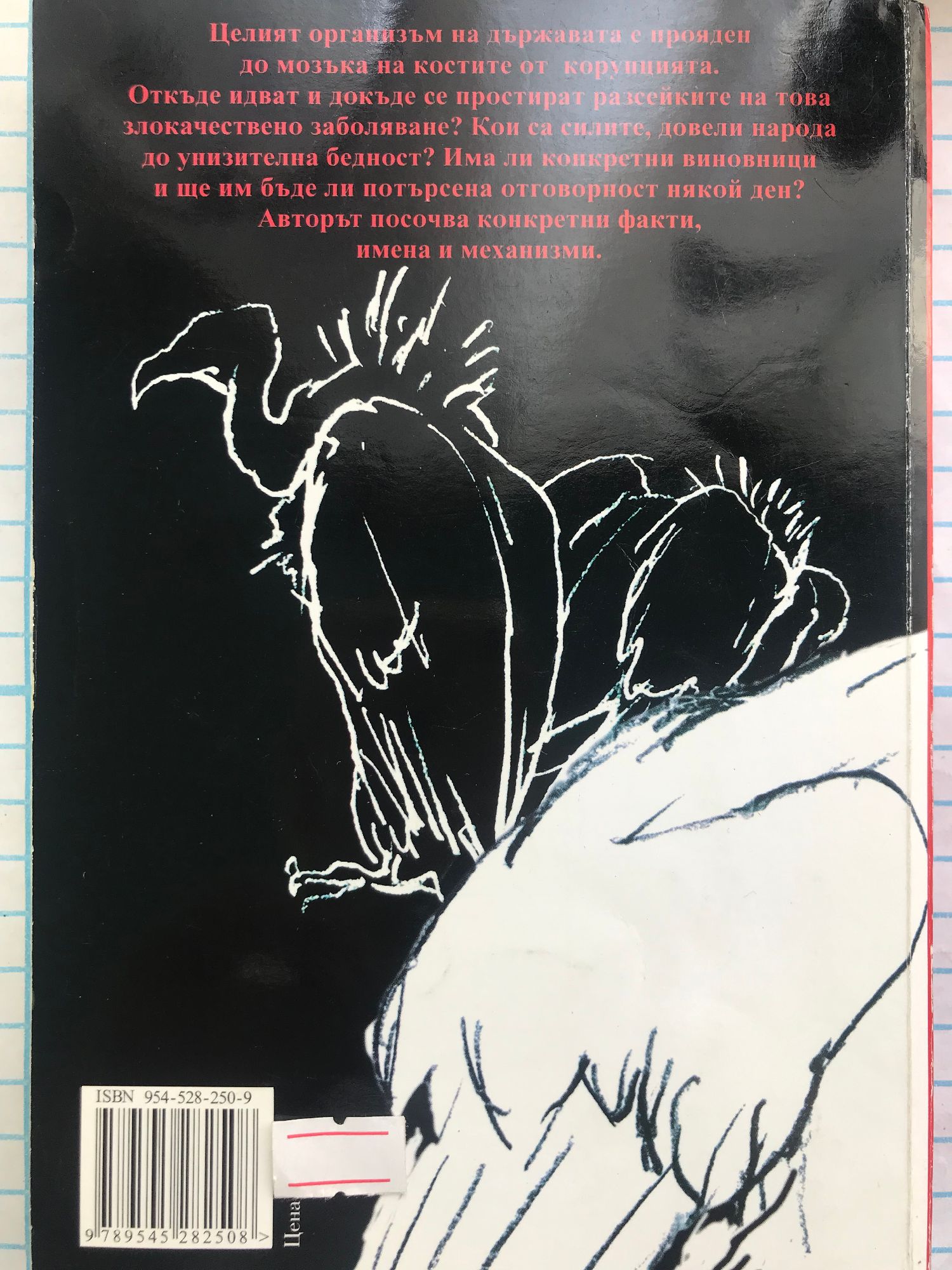 Целият организъм на държавата е прояден от корупцията. Откъде идват и докъде се простират разсейките на това злокачествено заболяване? Има ли конкретни виновници и ще им бъде ли потърсена отговорност някой ден? Авторът посочва конкретни факти, имена и механизми.