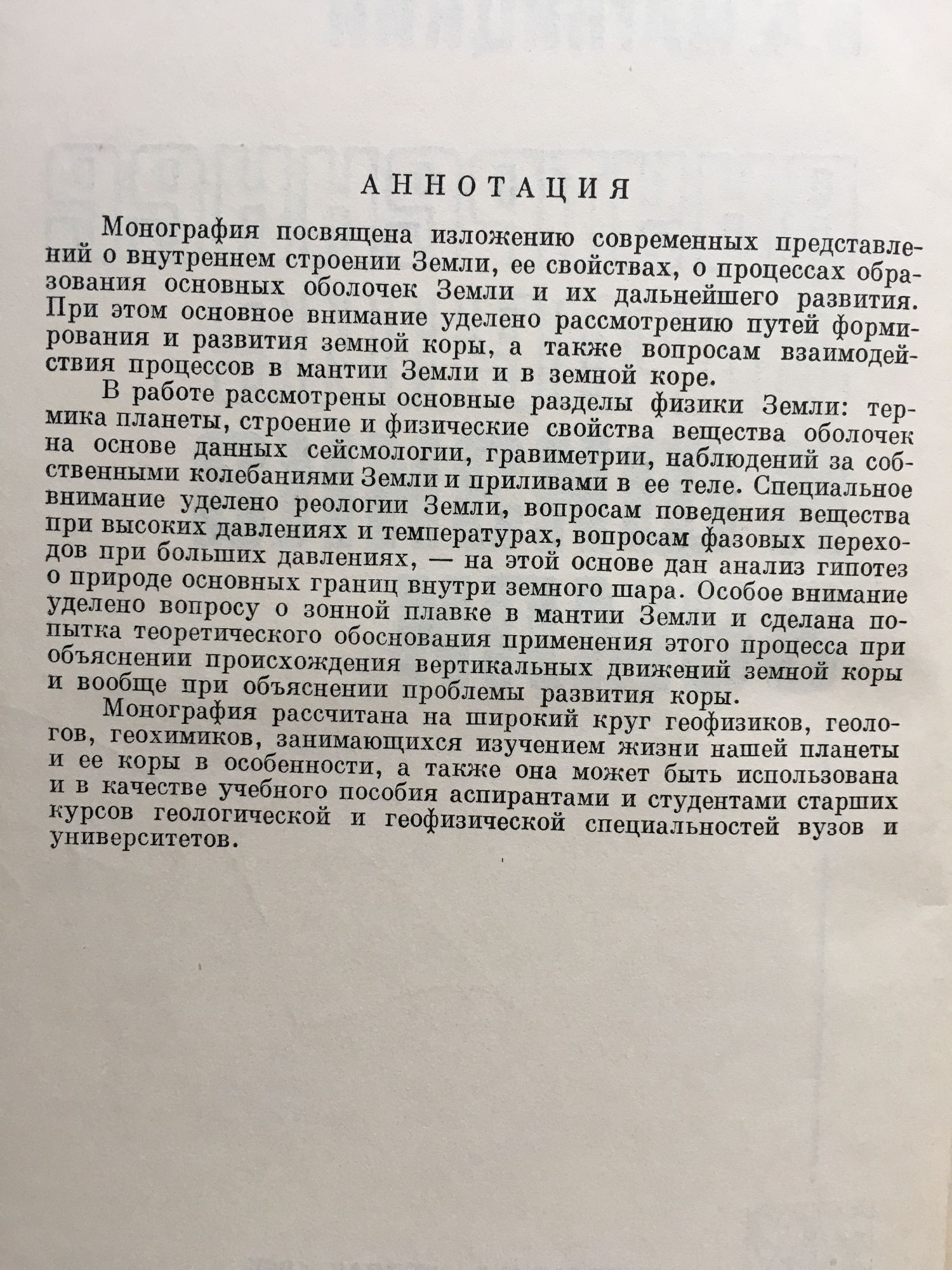 Внутреннее строение и физика земли