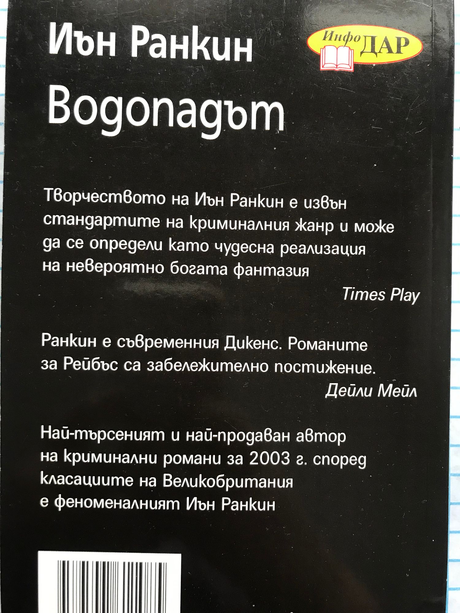 Творчеството на Иън Ранкин е извън стандартите на криминалния жанр и може да се определи като чудесна реализация на невероятно богата фантазия. Times Play Ранкин е съвременния Дикенс. Романите за Рейбъс са забележително постижение. Дейли Мейл Най-търсеният и най-продаван автор на криминални романи за 2003 г. според класациите на Великобритания е феноменалният Иън Ранкин