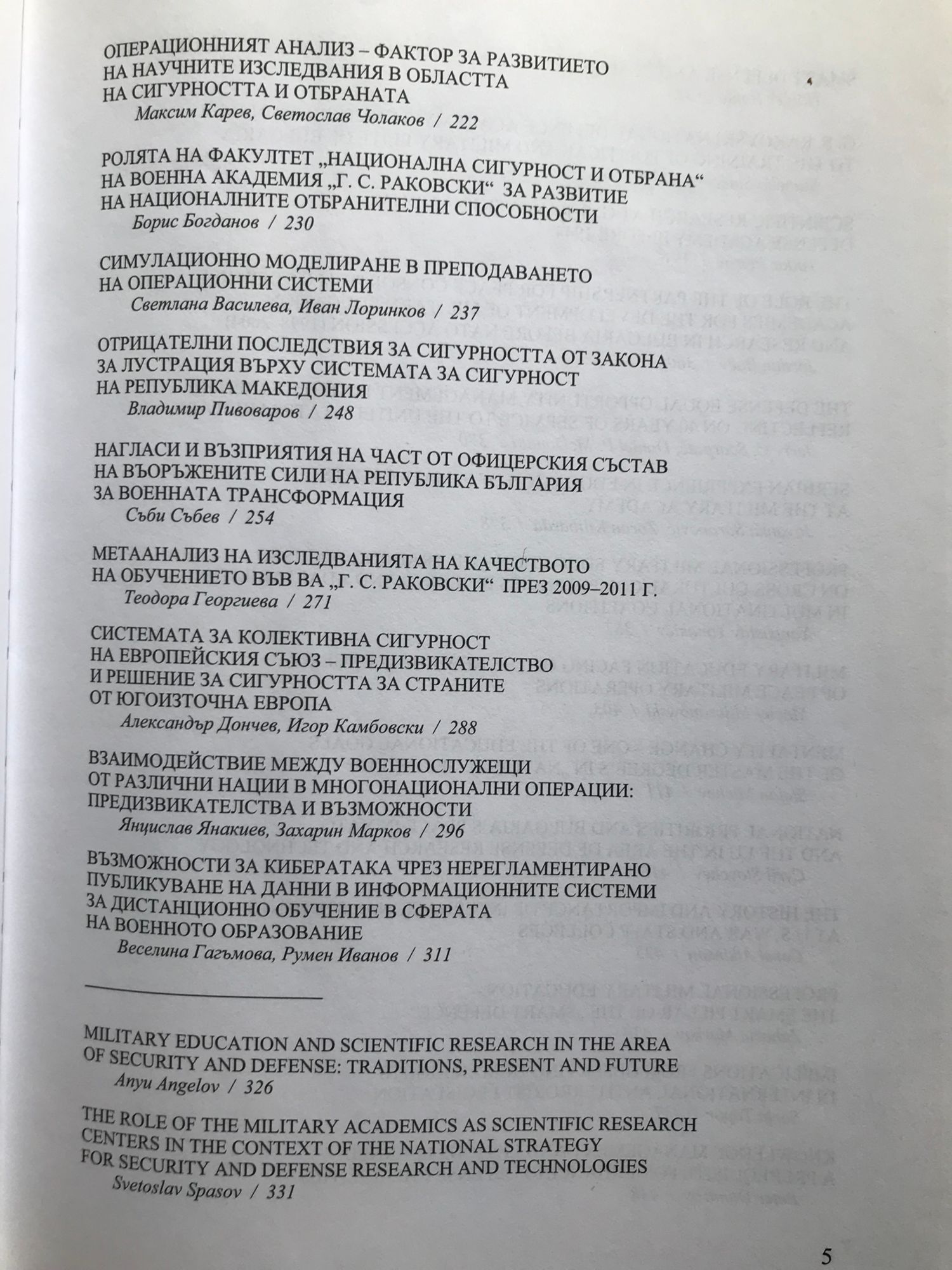 Военното образование и научните изследвания в сферата на отбраната и сигурността: Традиции, настояще и бъдеще / Professional Military Education and Defense Studies: Past, Present and Future