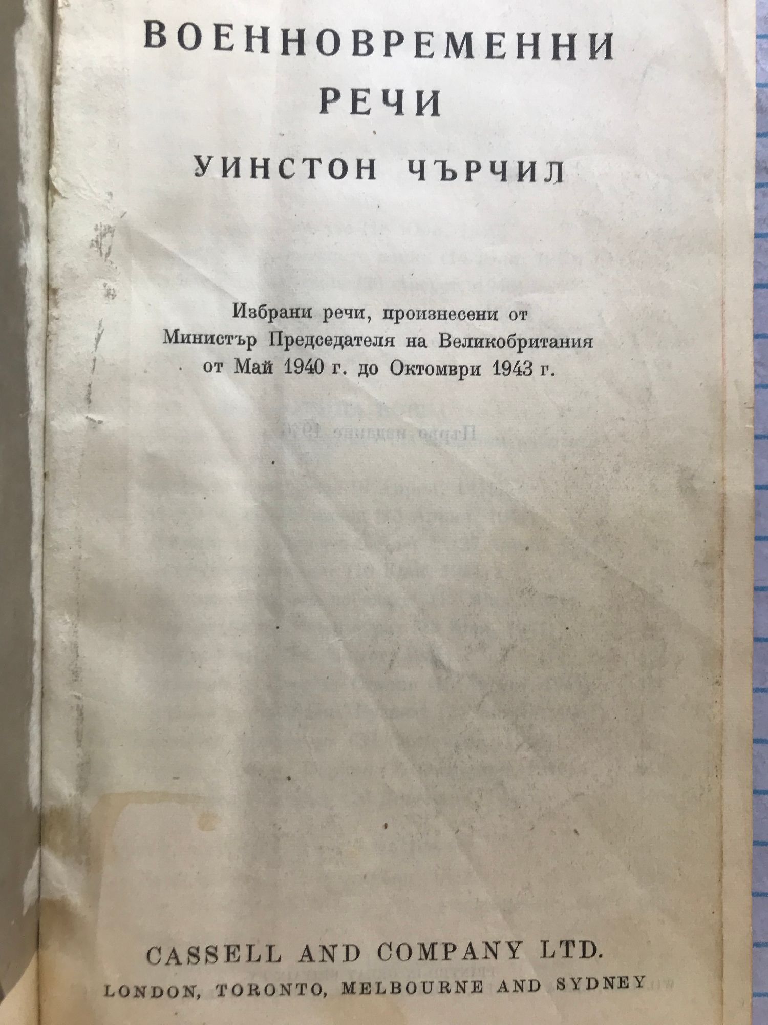 Избрани речи, произнесени от Министър Председателя на Великобритания от Май 1940 г. до Октомври 1943 г.