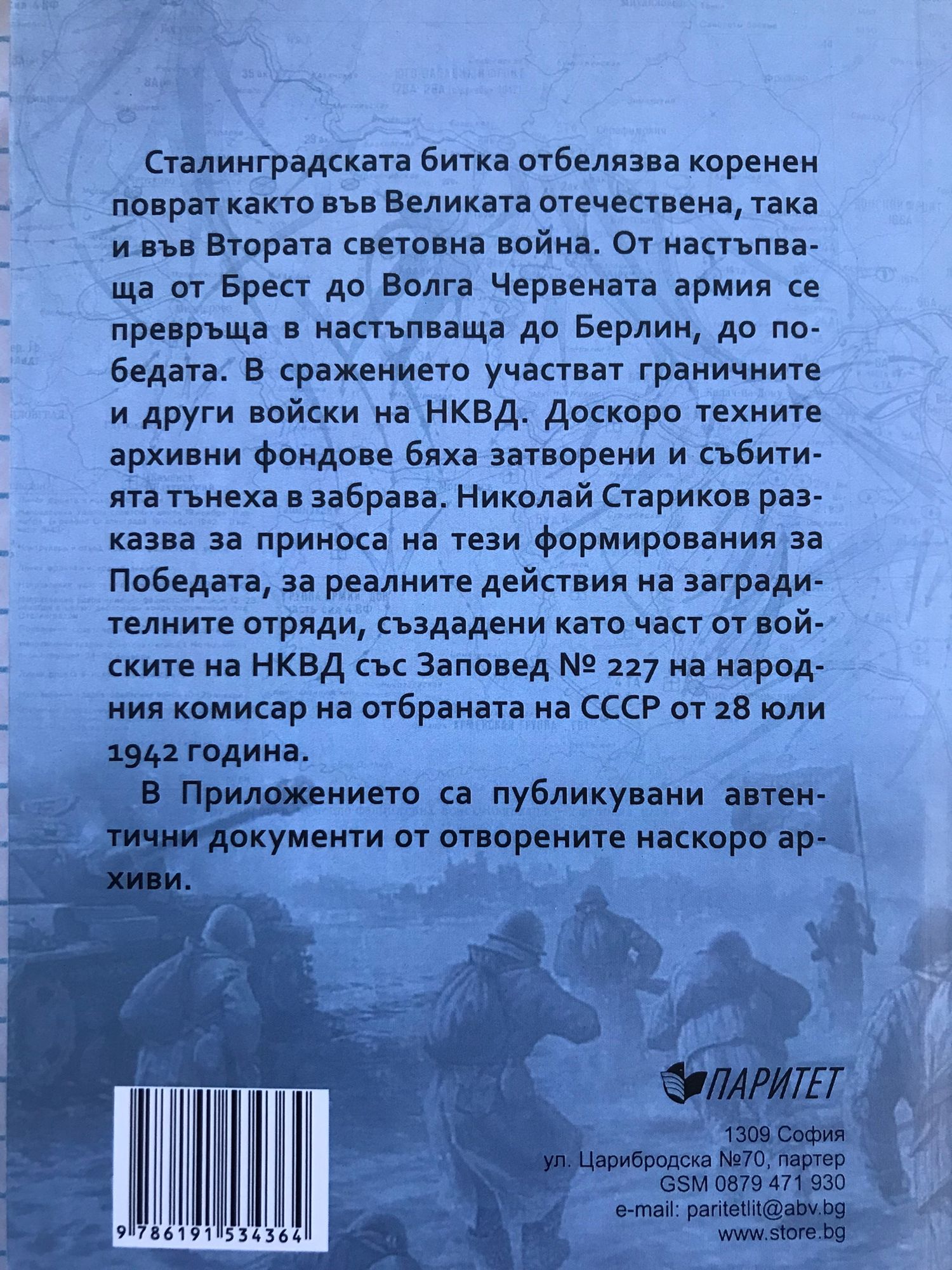 Сталинградската битка отбелязва коренен поврат както във Великата отечествена, така и във Втората световна война. От настъпваща от Брест до Волга Червената армия се превръща в настъпваща до Берлин, до победата. В сражението участват граничните и други войски на НКВД. Доскоро техните архивни фондове бяха затворени и събитията тънеха в забрава. Николай Стариков разказва за приноса на тези формирования за Победата, за реалните действия на заградителните отряди, създадени като част от войските на НКВД със Заповед № 227 на народния комисар на отбраната на СССР от 28 юли 1942 година. В Приложението са публикувани автентични документи от отворените наскоро архиви.