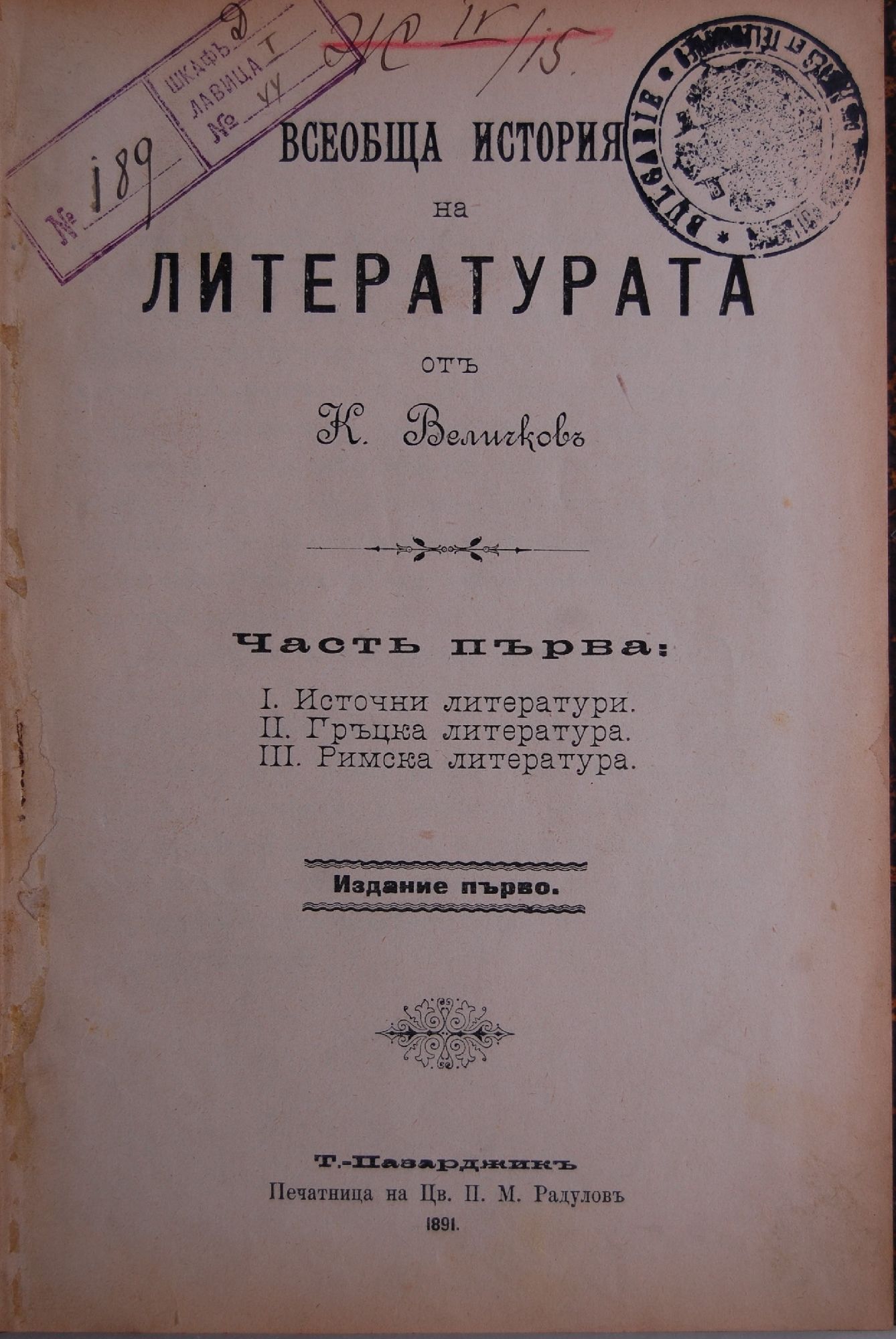 - издателство: Печатница "Цв.П.М.Радуловъ"