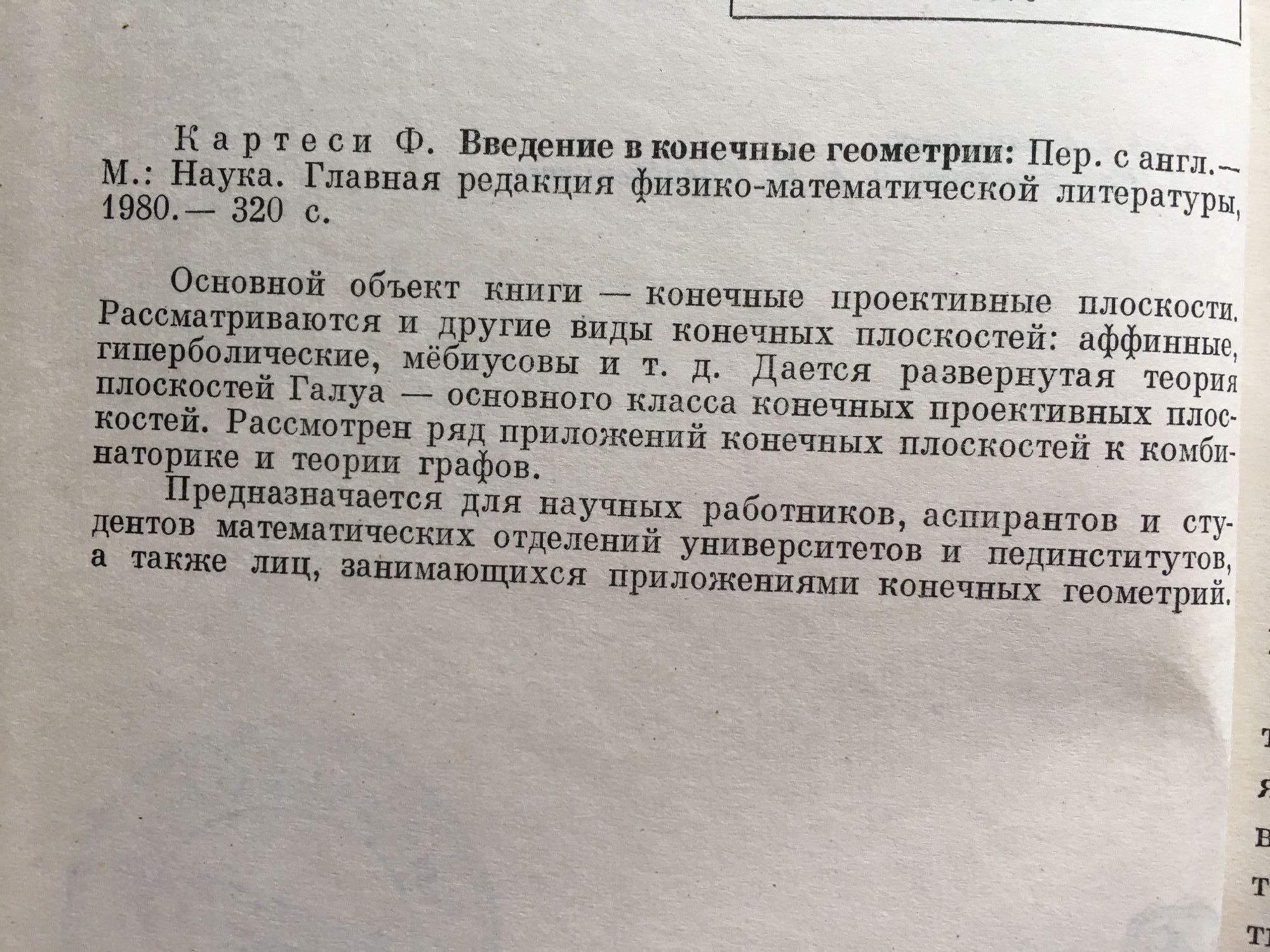 Введение в конечные геометрии