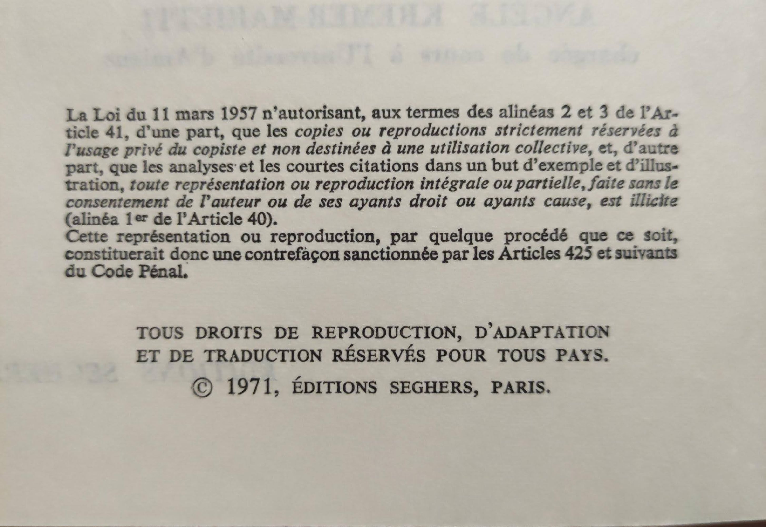 - издателство: Editions Seghers