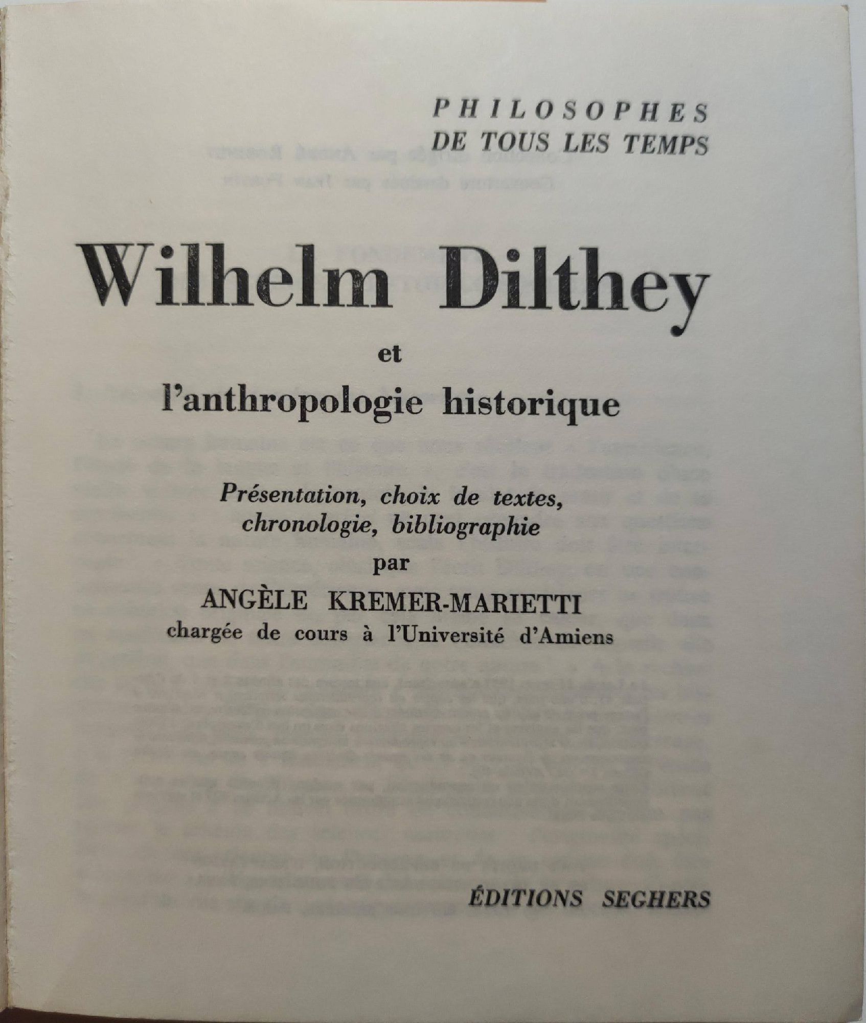 Presentation, choix de textes, chronologie, bibliographie par Angele Kremer-Marietti