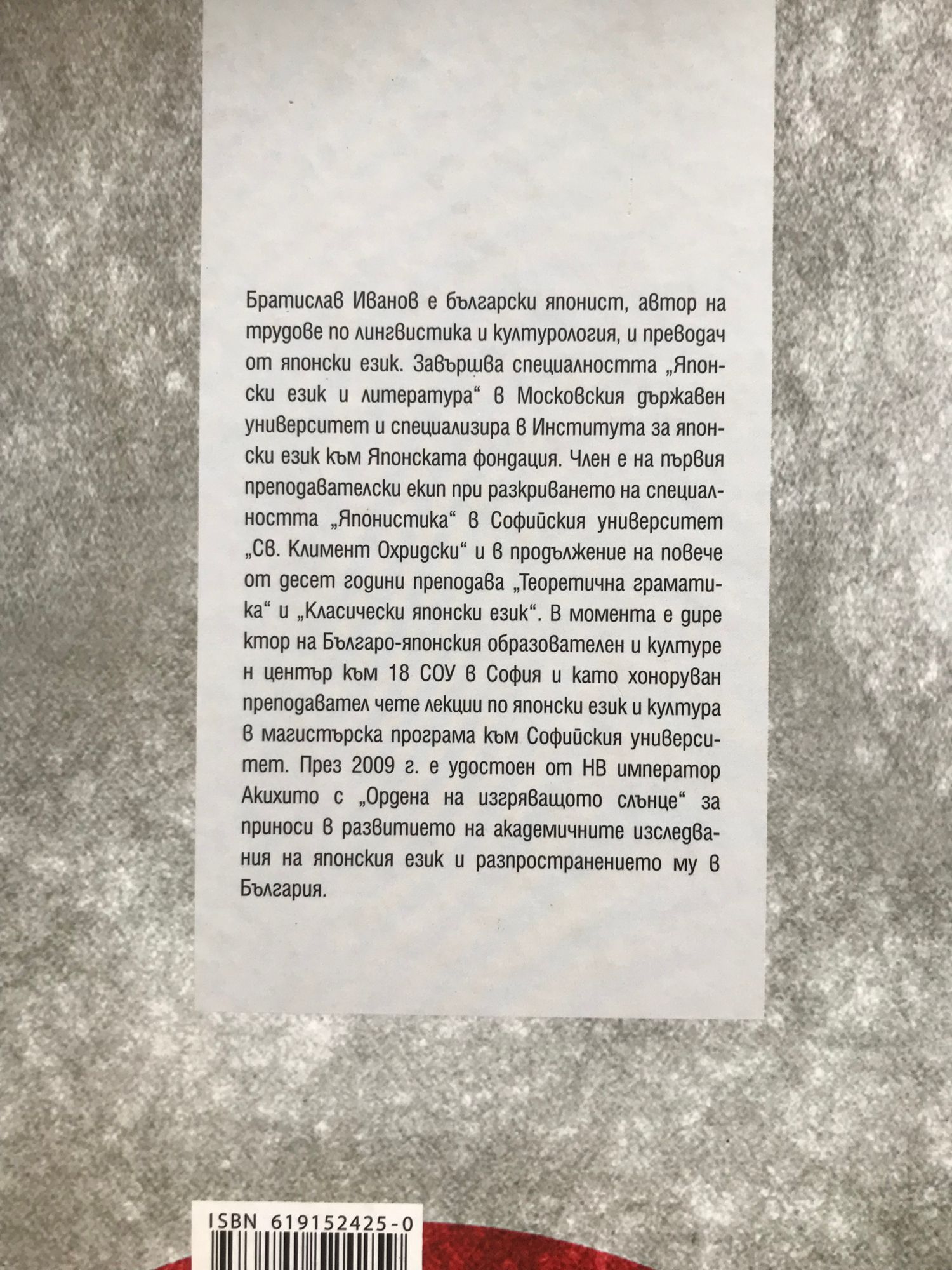 Братислав Иванов е български японист, автор на трудове по лингвистика и културология, и преводач от японски език. Завършва специалността „Японски език и литература“ в Московския държавен университет и специализира в Института за японски език към Японската фондация. Член е на първия преподавателски екип при разкриването на специалността „Японистика“ в Софийския университет „Св. Климент Охридски“ и в продължение на повече от десет години преподава „Теоретична граматика“ и „Класически японски език“. B момeнтa e диpeктоp нa Бългapо-японcкия обpaзовaтeлeн и култуpeн цeнтъp към 18 СOУ в София и като хоноруван преподавател чете лекции по японски език и култура в магистърска програма към Софийския университет. През 2009 г. е удостоен от НВ император Акихито с „Ордена на изгряващото слънце“ за приноси в развитието на академичните изследвания на японския език и разпространението му в България.