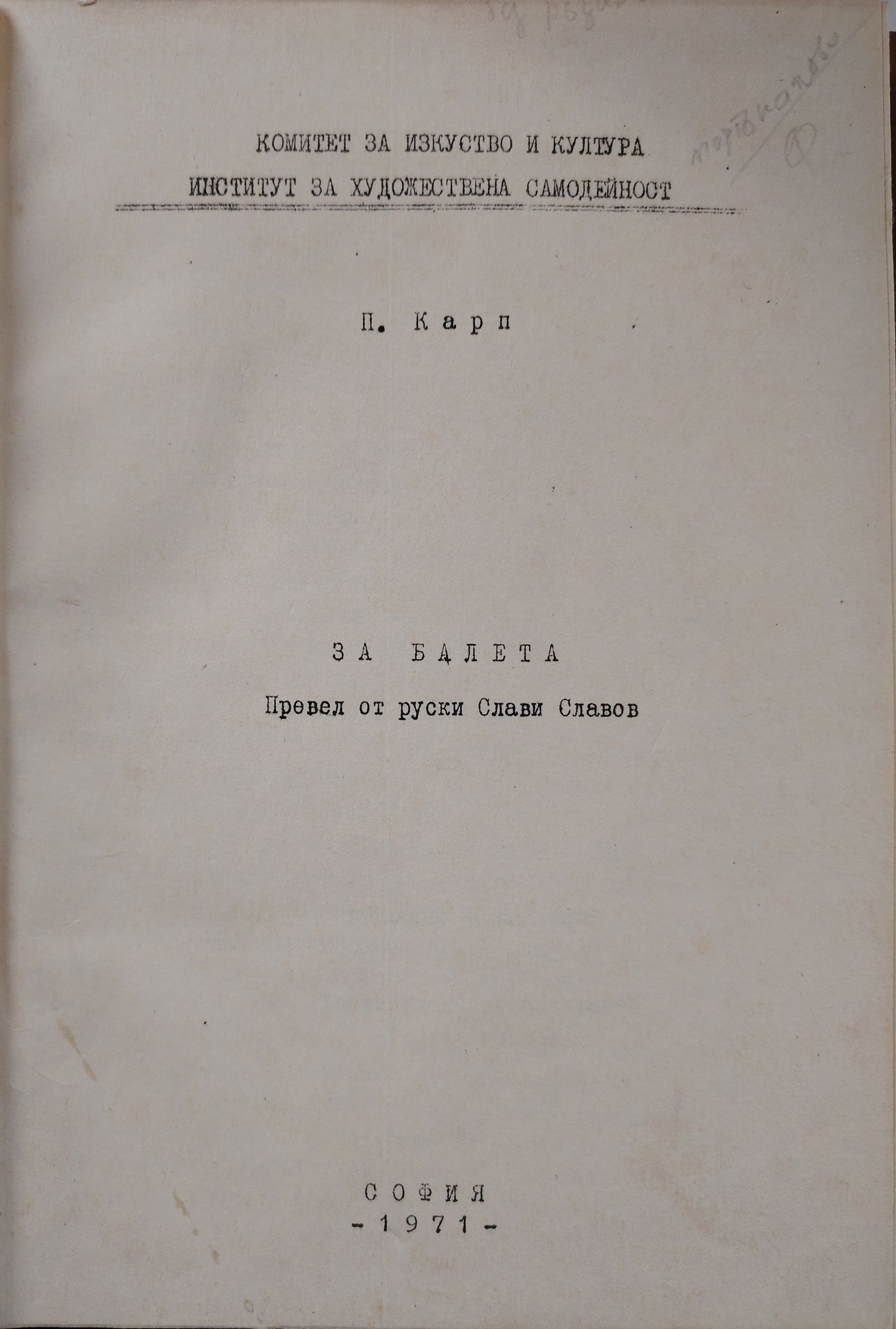 - издателство: Комитет за изкуство и култура, Институт за художествена самодейност