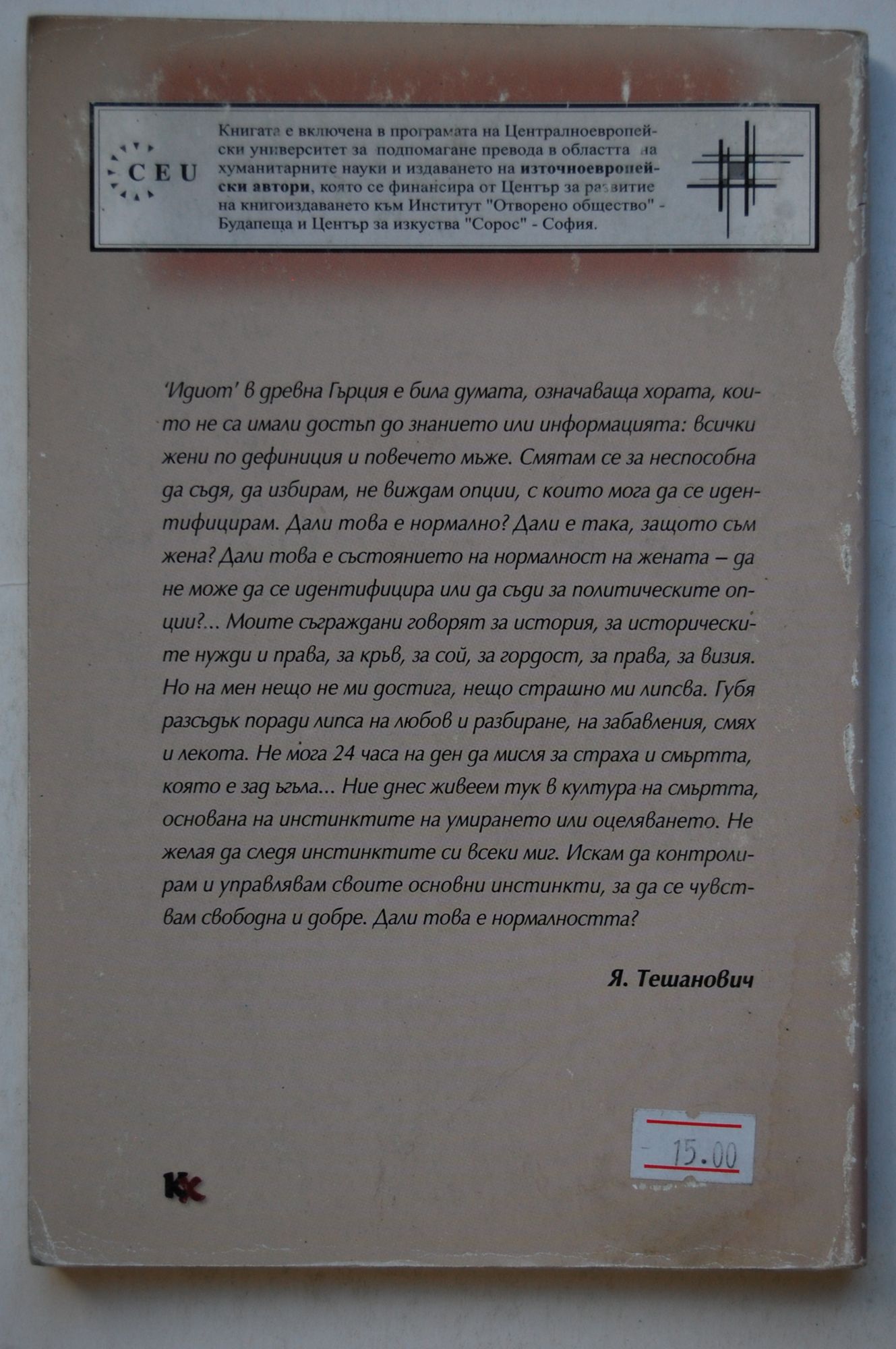 5,11 € / 9,99 лв.Добро състояние на книжното тяло. С частични захабявания по около гръбчето; леки следи от четене в десните ъгли.