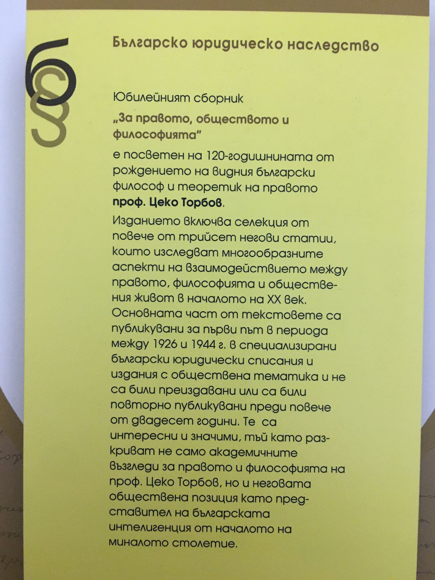 Юбилеен сборник, посветен на 120-годишнината от рождението на проф. д-р. Цеко Торбов