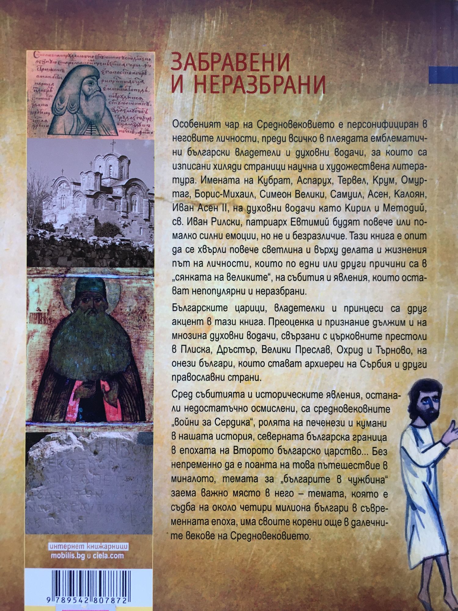 Особеният чар на Средновековието е персонифициран в неговите личности, преди всичко в плеядата емблематични български владетели и духовни водачи, за които са изписани хиляди страници научна и художествена литература. Имената на Кубрат, Аспарух, Тервел, Крум, Омуртаг, Борис-Михаил, Симеон Велики, Самуил, Асен, Калоян, Иван Асен ІІ, на духовни водачи като Кирил и Методий, св. Иван Рилски, патриарх Евтимий будят повече или по-малко силни емоции, но не и безразличие. Тази книга е опит да се хвърли повече светлина и върху делата и жизнения път на личности, които по едни или други причини са в „сянката на великите“, на събития и явления, които остават непопулярни и неразбрани. Българските царици, владетелки и принцеси са друг акцент в тази книга. Преоценка и признание дължим и на мнозина духовни водачи, свързани с църковните престоли в Плиска, Дръстър, Велики Преслав, Охрид и Търново, на онези българи, които стават архиереи на Сърбия и други православни страни. Сред събитията и историческите явления, останали недостатъчно осмислени, са средновековните „войни за Сердика”, ролята на печенези и кумани в нашата история, северната българска граница в епохата на Второто българско царство... Без непременно да е поанта на това пътешествие в миналото, темата за „българите в чужбина” заема важно място в него – темата, която е съдба на около четири милиона българи в съвременната епоха, има своите корени още в далечните векове на Средновековието.