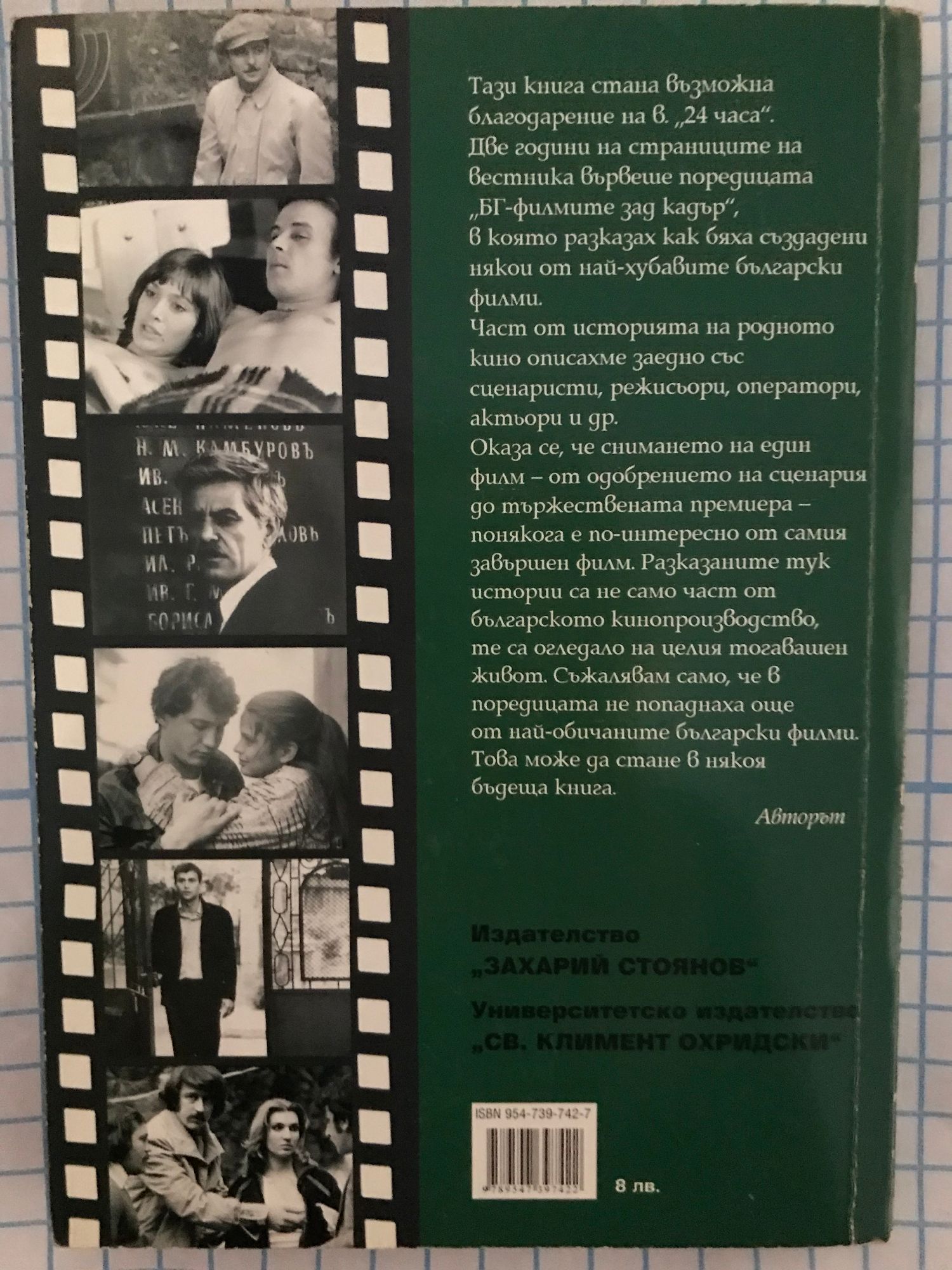 Тази книга стана възможна благодарение на в. "24 часа". Две години на страниците на вестника вървеше поредицата "БГ-филмите зад кадър", в която разказах как бяха създадени някои от най-хубавите български филми. Част от историята на родното кино описахме заедно със сценаристи, режисьори, оператори, актьори и др. Оказа се, че снимането на един филм - от одобрението на сценария до тържествената премиера - понякога е по-интересно от самия Завършен филм. Разказаните тук истории са не само част от българското кинопроизводство, те са огледало на целия тогавашен живот. Съжалявам само, че в поредицата не попаднаха още от най-обичаните български филми. Това може да стане в някоя бъдеща книга.