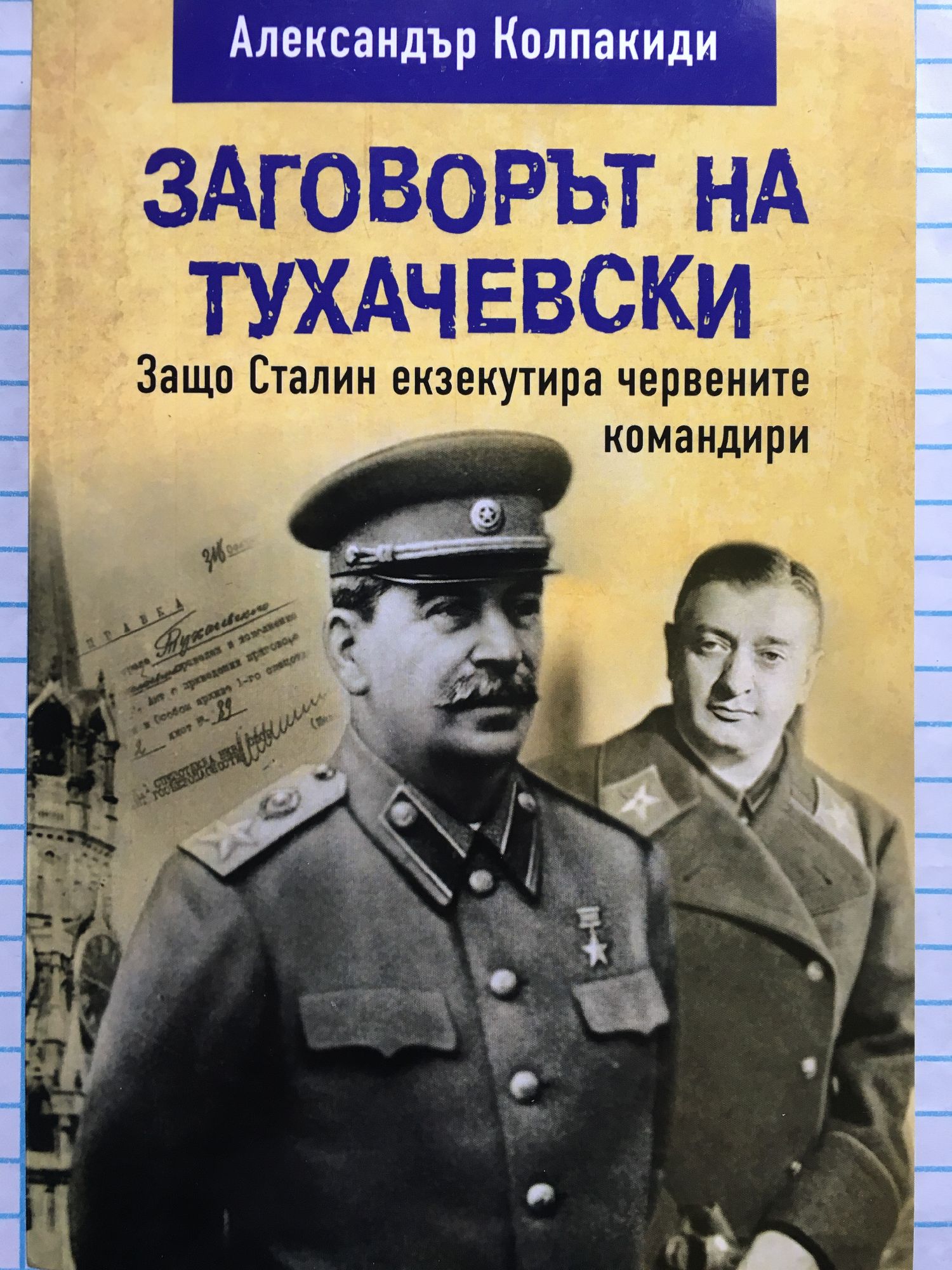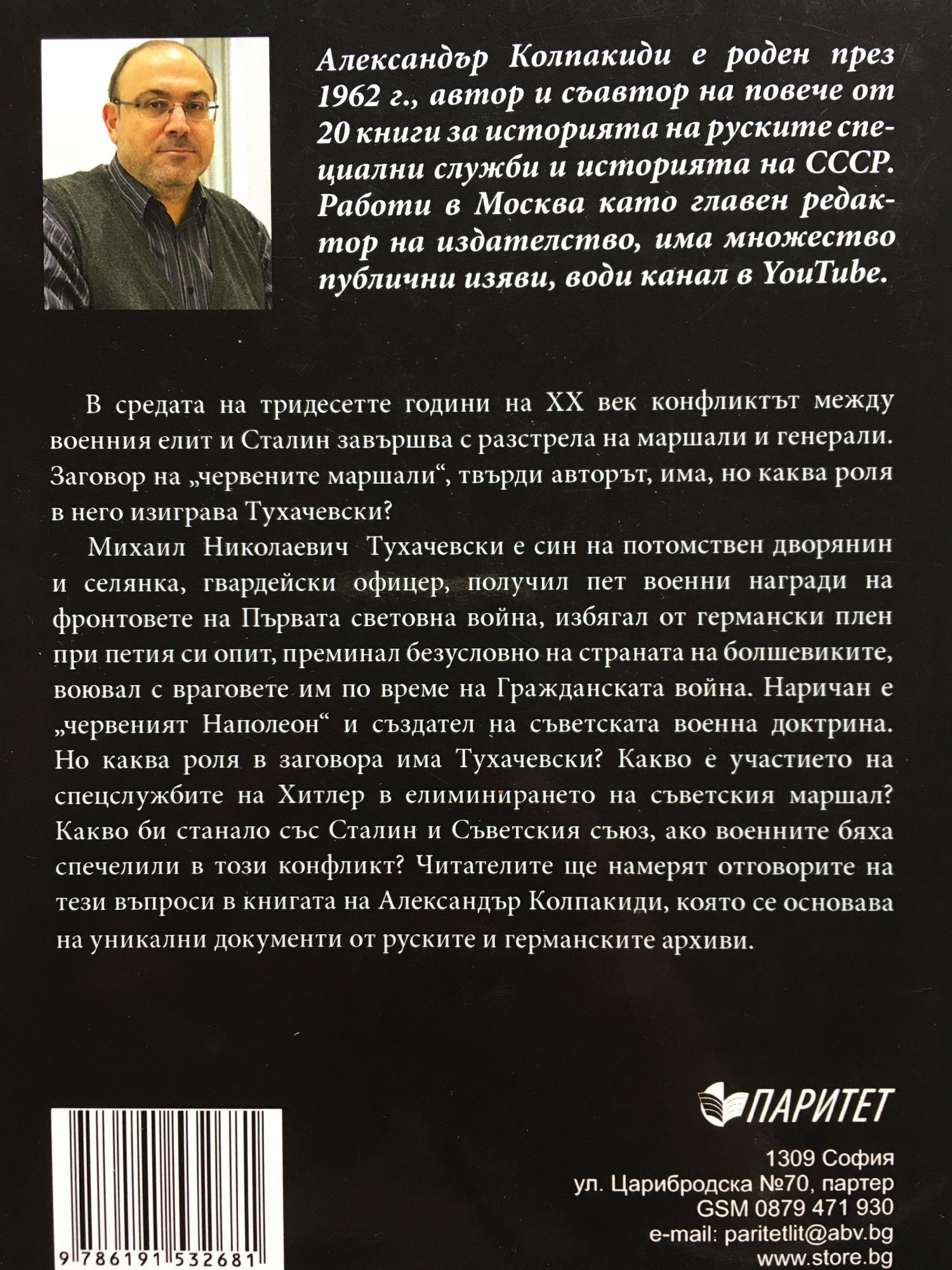 В средата на тридесетте години на ХХ век конфликтът между военния елит и Сталин завършва с разстрела на маршали и генерали. Заговор на „червените маршали“, твърди авторът, има, но каква роля в него изиграва Тухачевски? Какво е участието на спецслужбите на Хитлер в елиминирането на съветския маршал; Какво би станало със Сталин и Съветския съюз, ако военните бяха спечелили в този конфликт. Читателите ще намерят отговорите на тези въпроси в книгата на Александър Колпакиди, която се основава на уникални документи от руските и германските архиви.