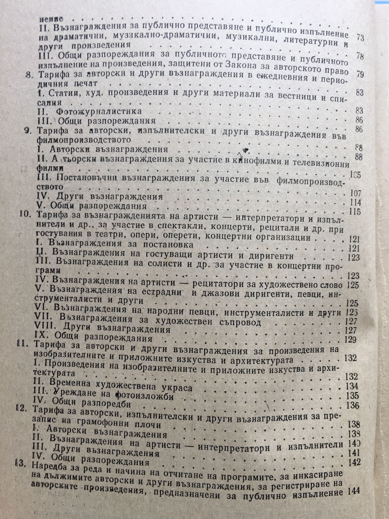 Тарифи за авторски, изпълнителски и други възнаграждения за творчески труд