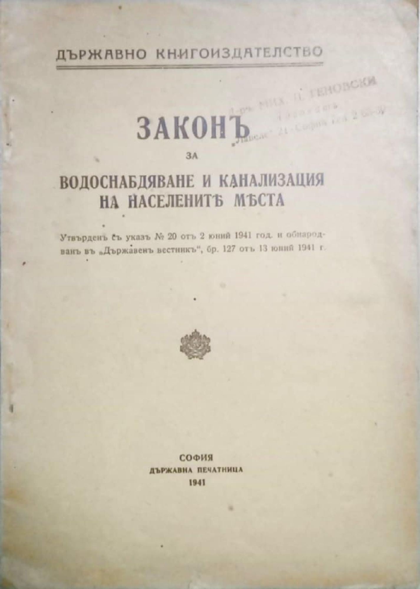 Законъ (закон) за водоснабдяване и канализация на населените места