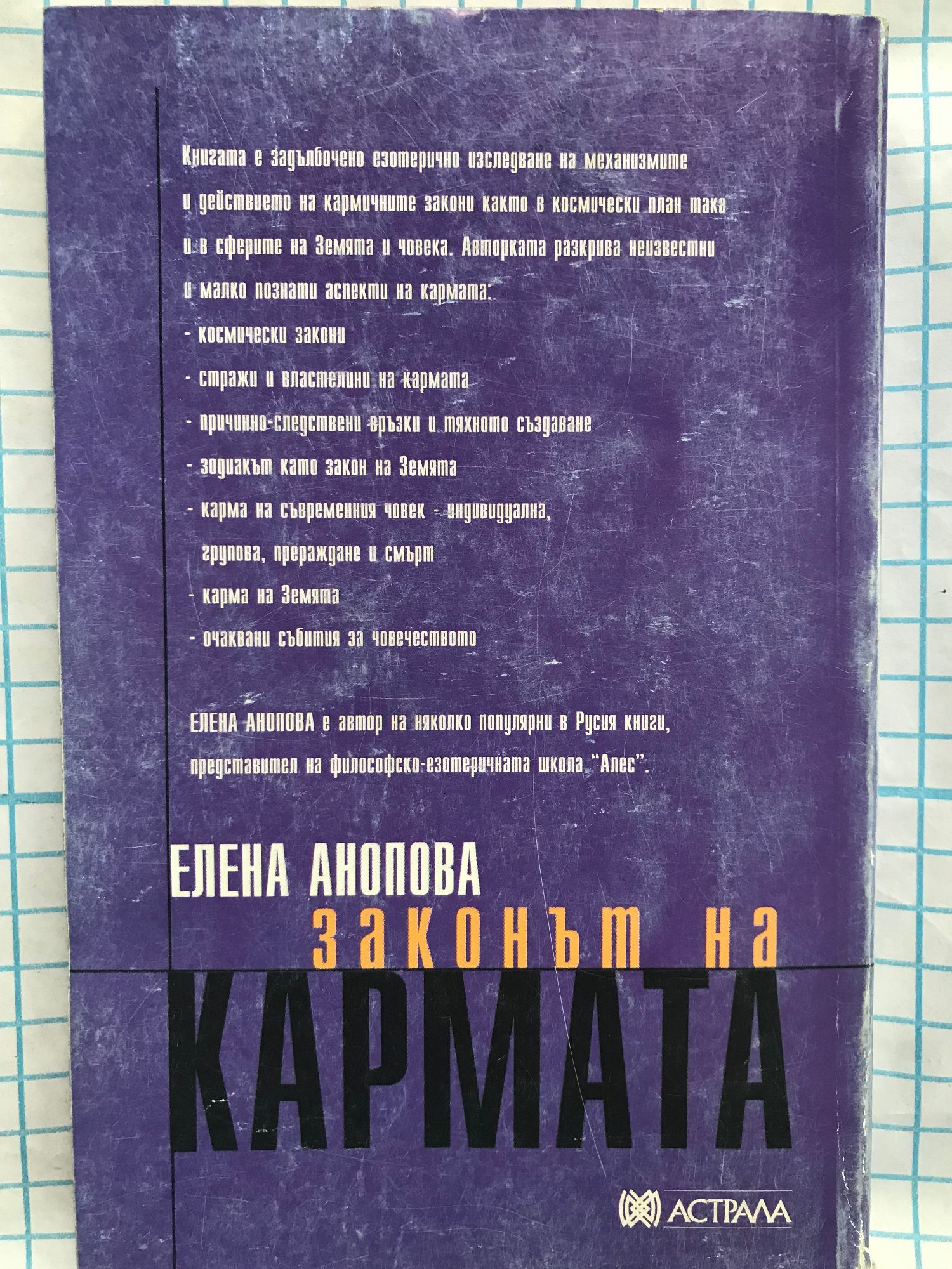 Книгата е задълбочено езотерично изследване на механизмите и действието на кармичните закони както в космически план, така и в сферите на Земята и човека. Авторката разкрива неизвестни и малко познати аспекти на кармата: космически закони; стражи и властелини на кармата; причинно-следствени връзки и тяхното създаване; зодиакът като закон на Земята; карма на съвременния човек - индивидуална, групова, прераждане и смърт; карма на Земята; очаквани събития за човечеството.